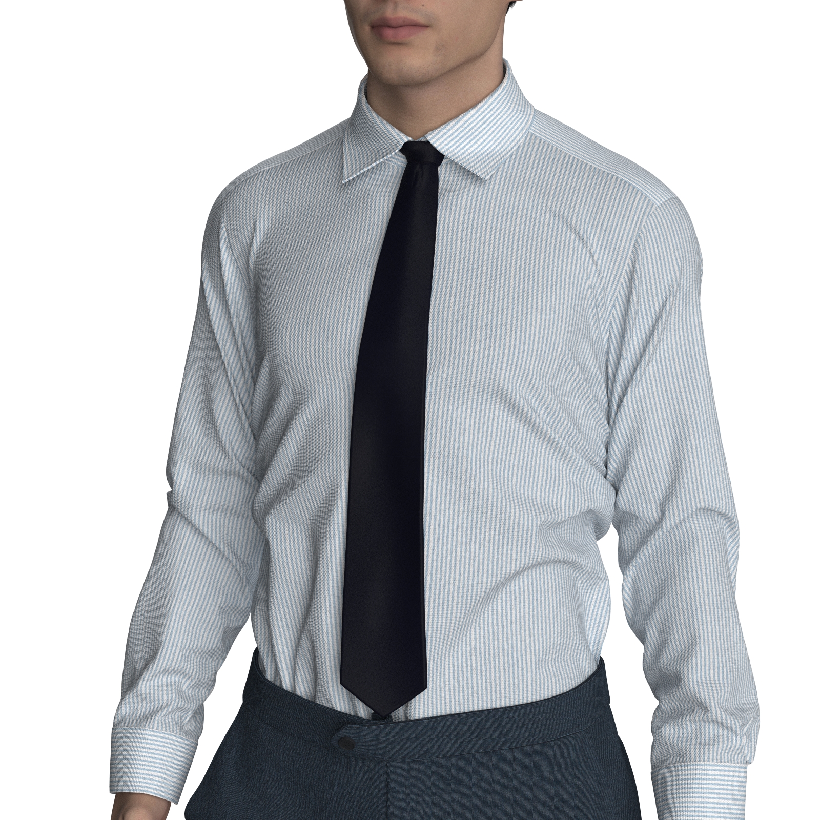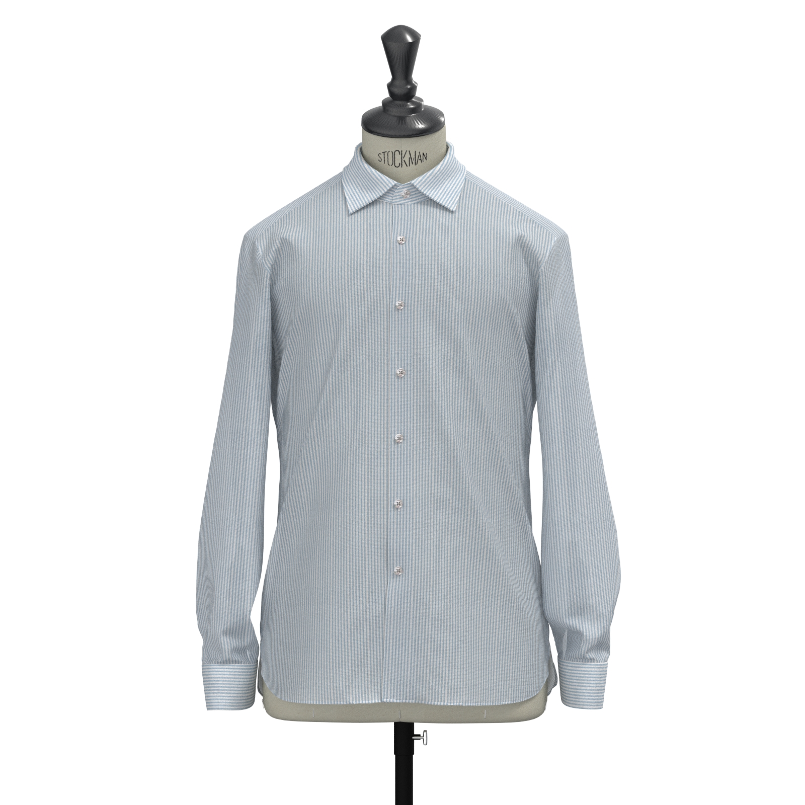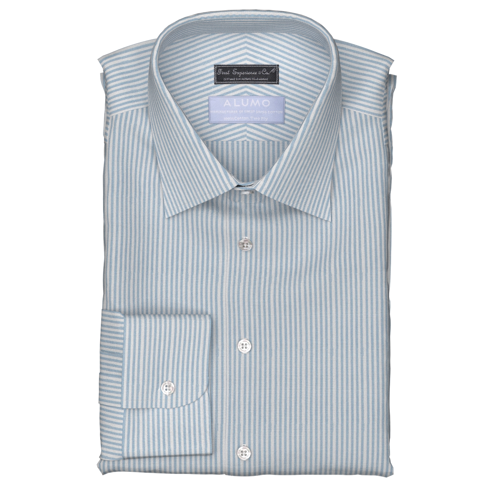 上質にこだわる世界のセレブが愛するスイスALUMOの100双糸のサックスストライプ・ボイル生地です。
