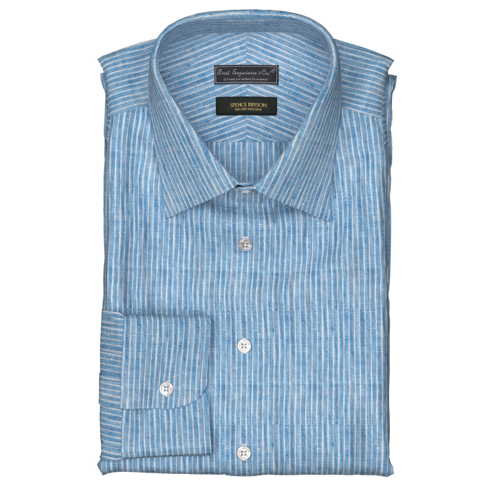 世界最高のリネンと賞されるアイルランド製「アイリッシュリネン」のSPENCE BRYSONのORKNEYシリーズのサックス・ストライプ素材です。