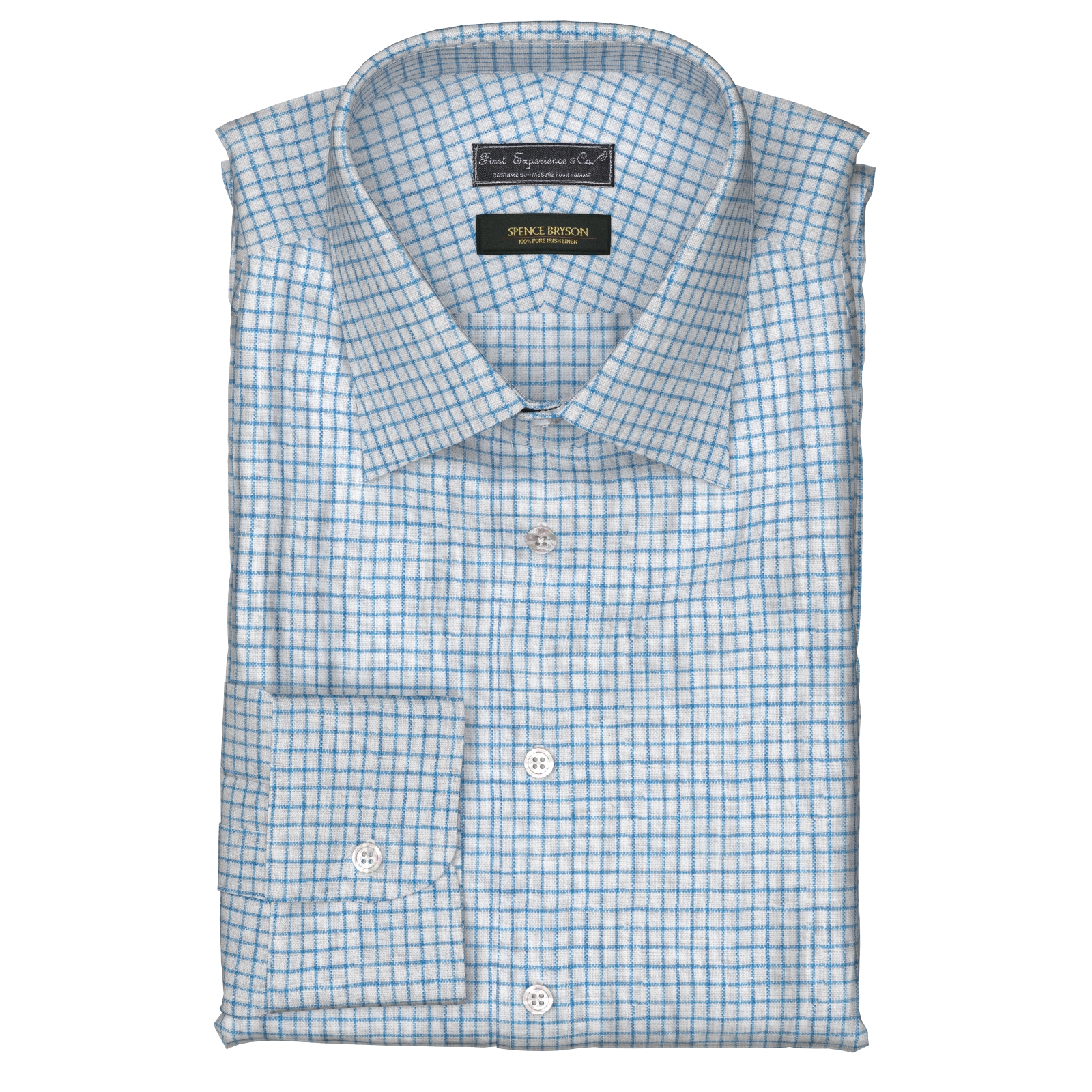 世界最高のリネンと賞されるアイルランド製「アイリッシュリネン」のSPENCE BRYSONのORKNEYシリーズのサックス・グラフチェック素材です。