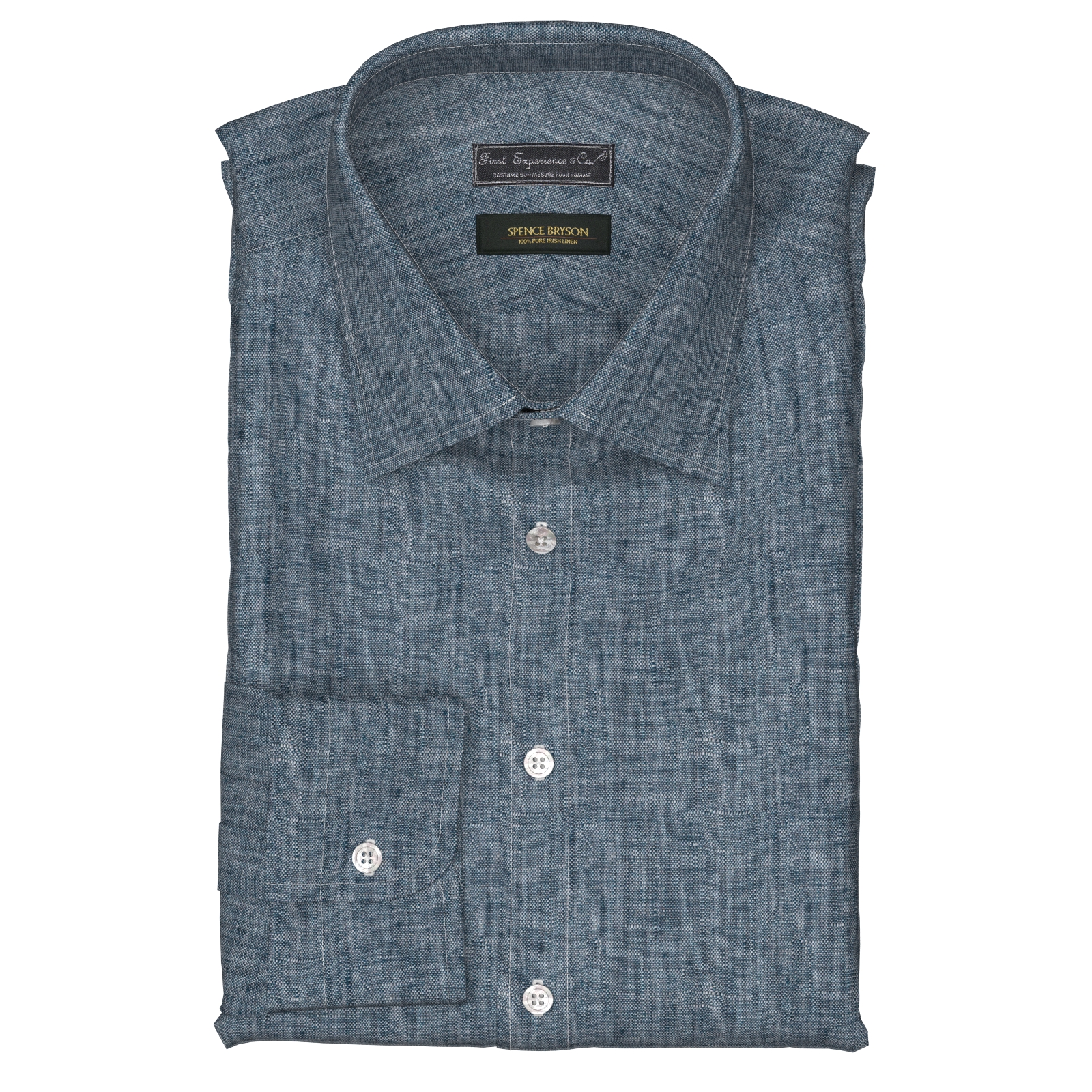 世界最高のリネンと賞されるアイルランド製「アイリッシュリネン」のSPENCE BRYSONのORKNEYシリーズのネイビーシャンブレー素材です。
