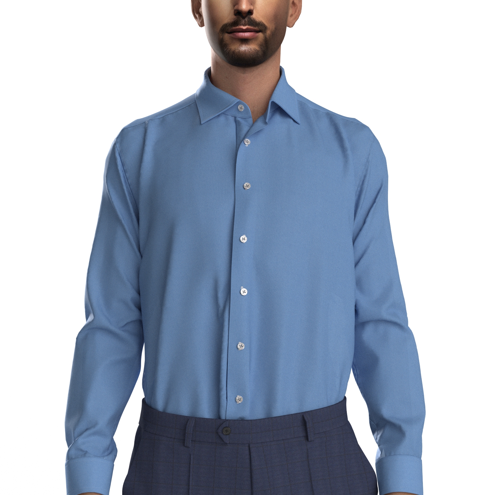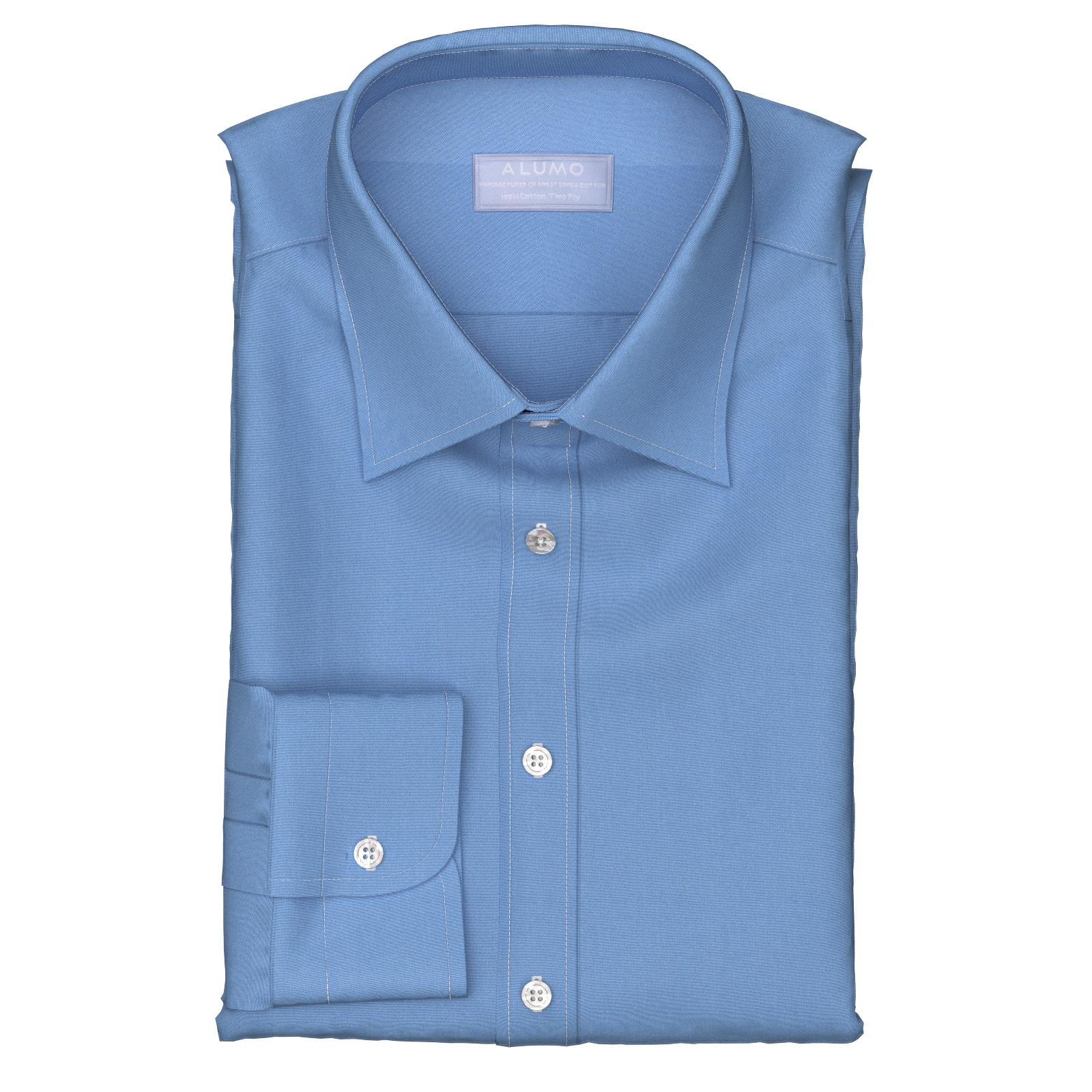 最上級の世界的素材メーカーの地位に君臨するスイス・アルモ社の120双糸のブルー・ブロード生地です。