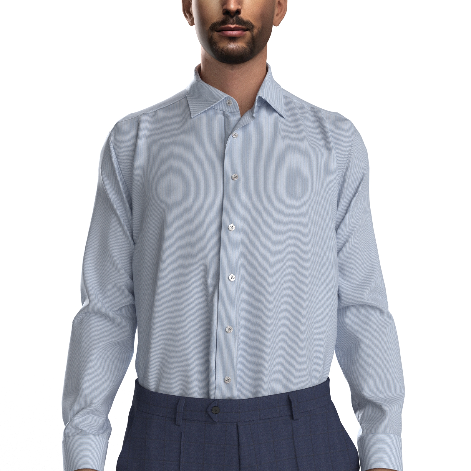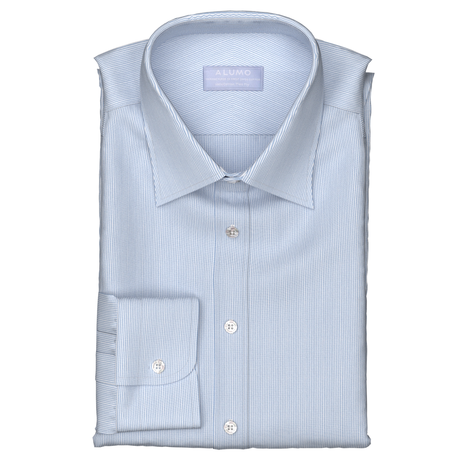 最上級の世界的素材メーカーの地位に君臨するスイス・アルモ社の120双糸のサックス・ストライプ生地です。
