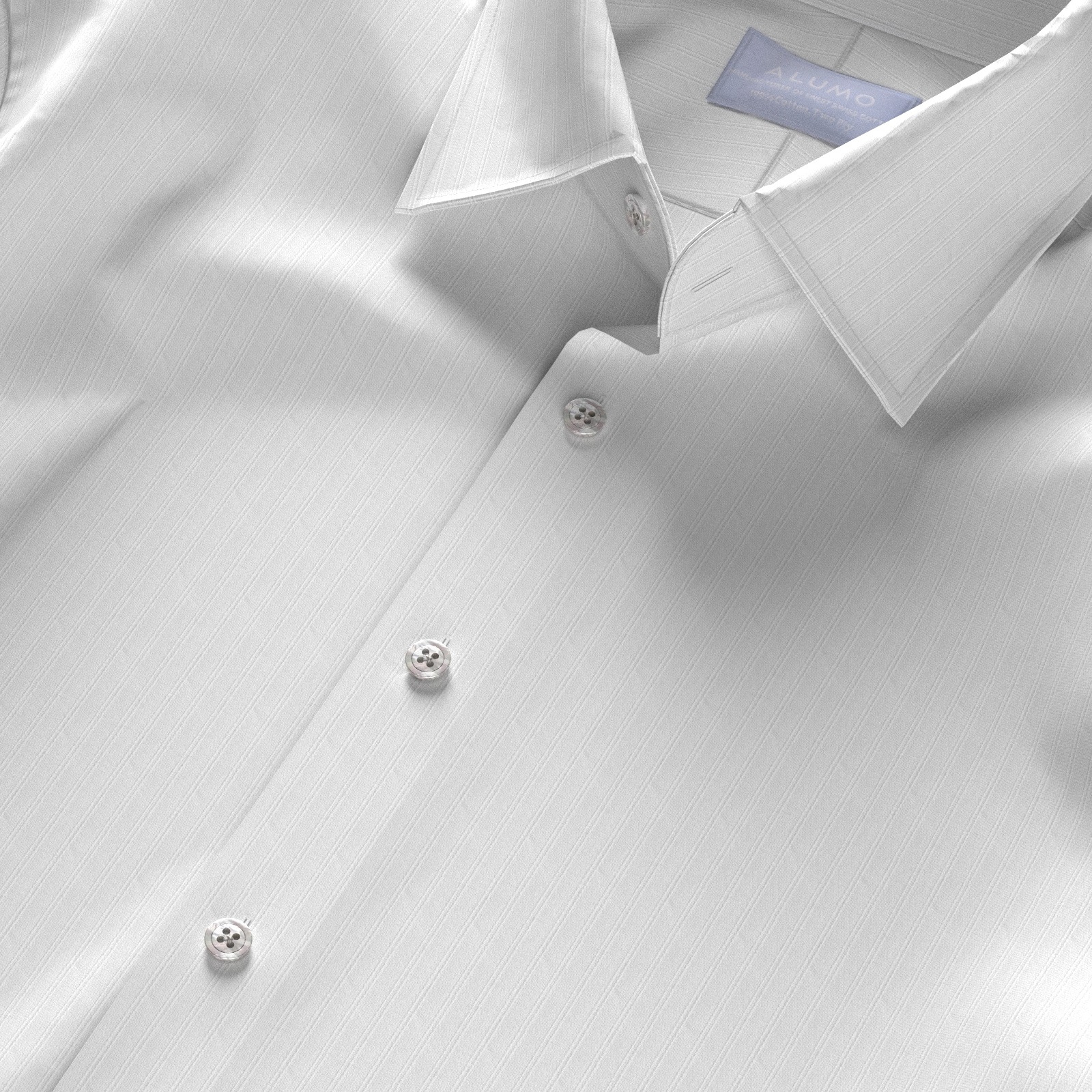 上質にこだわる世界のセレブが愛するスイスALUMOの光沢感豊かな120双糸ホワイト・ドビーのダブルストライプ生地です。