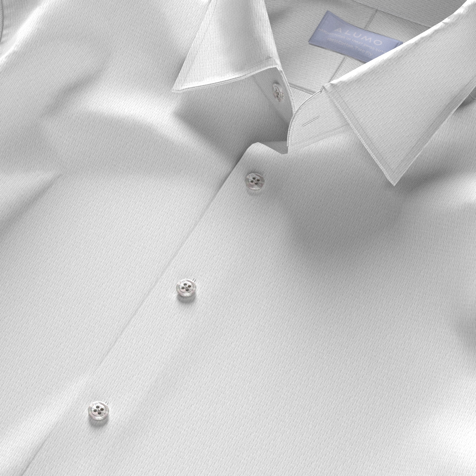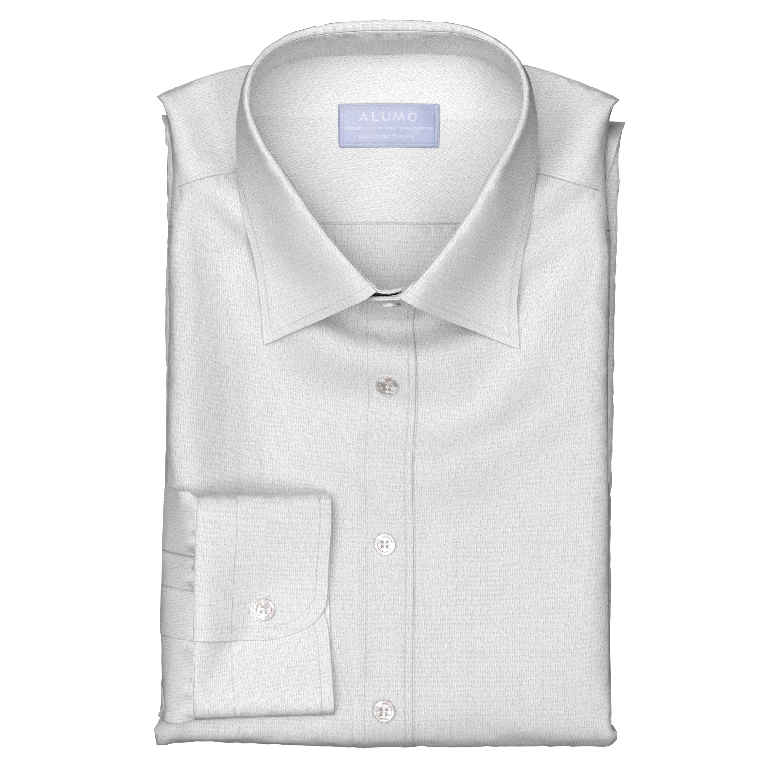 上質にこだわる世界のセレブが愛するスイスALUMOの光沢感豊かな120双糸ホワイトの細かな四角のドビー柄生地です。