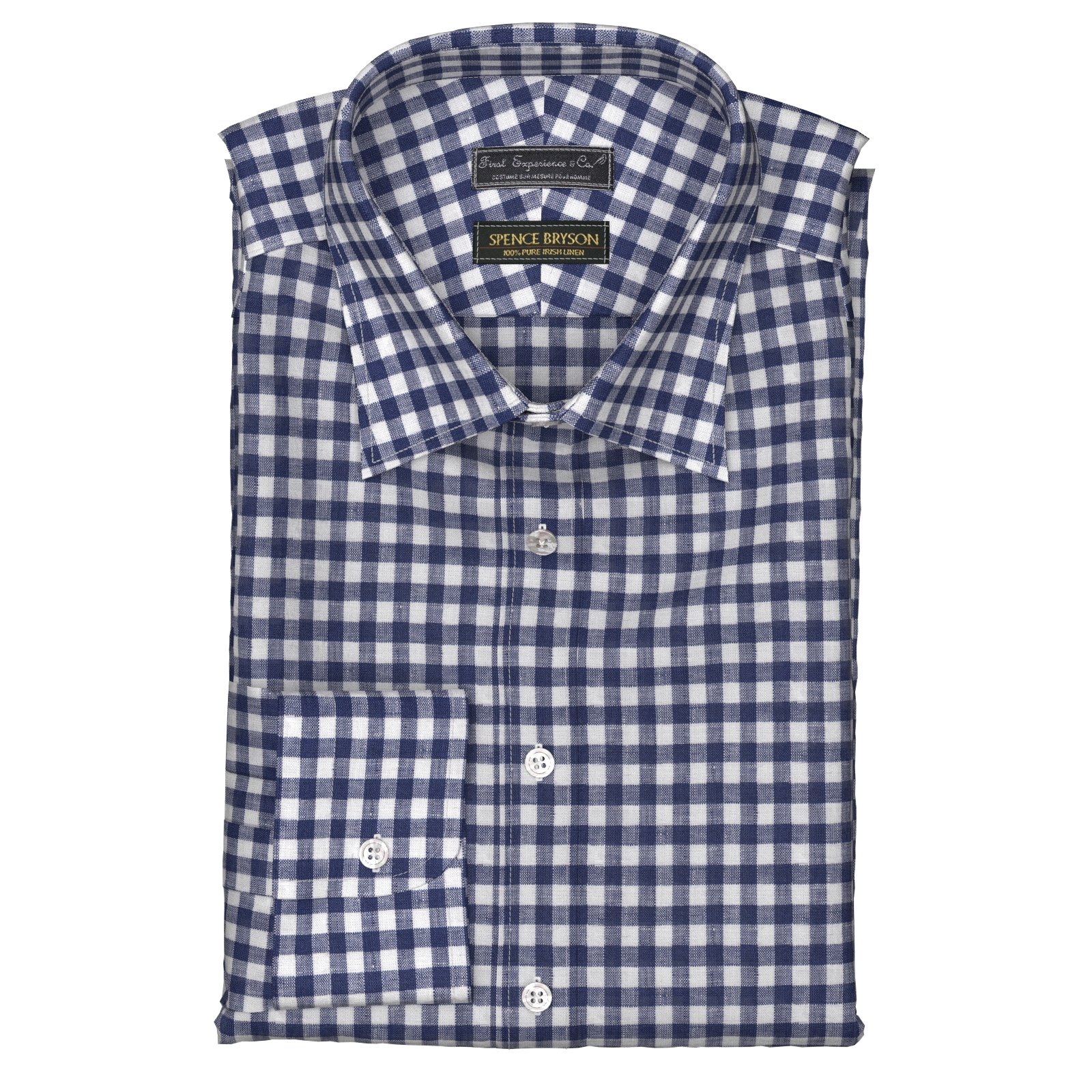 世界最高のリネンと賞されるアイルランド製「アイリッシュリネン」のSPENCE BRYSONのORKNEYシリーズのネイビー・ブロックチェック素材です。