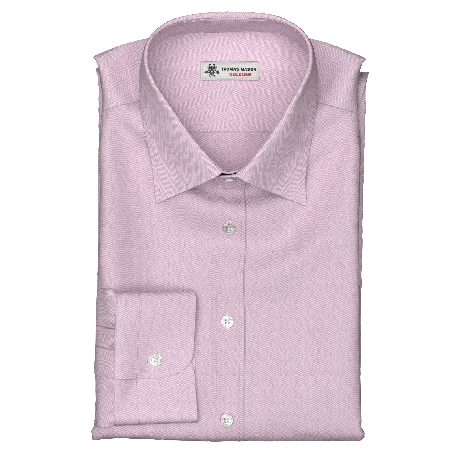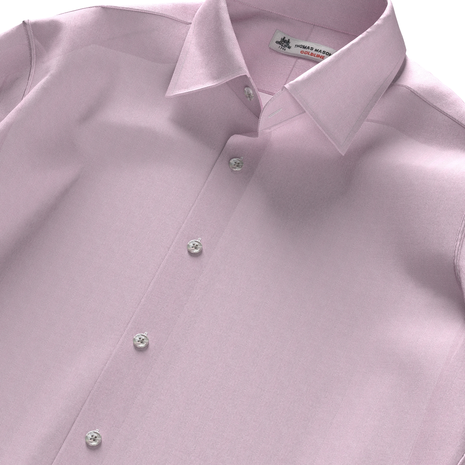 トーマス・メイソンのすべるように滑らかなGold Line140双糸の少し細めのピンク・ヘリンボーン織生地です。光沢感と陰影の美しさが特徴のヘリンボーンですが、この上質感は着ていれば必ず褒められると思るほどの仕上がりです。