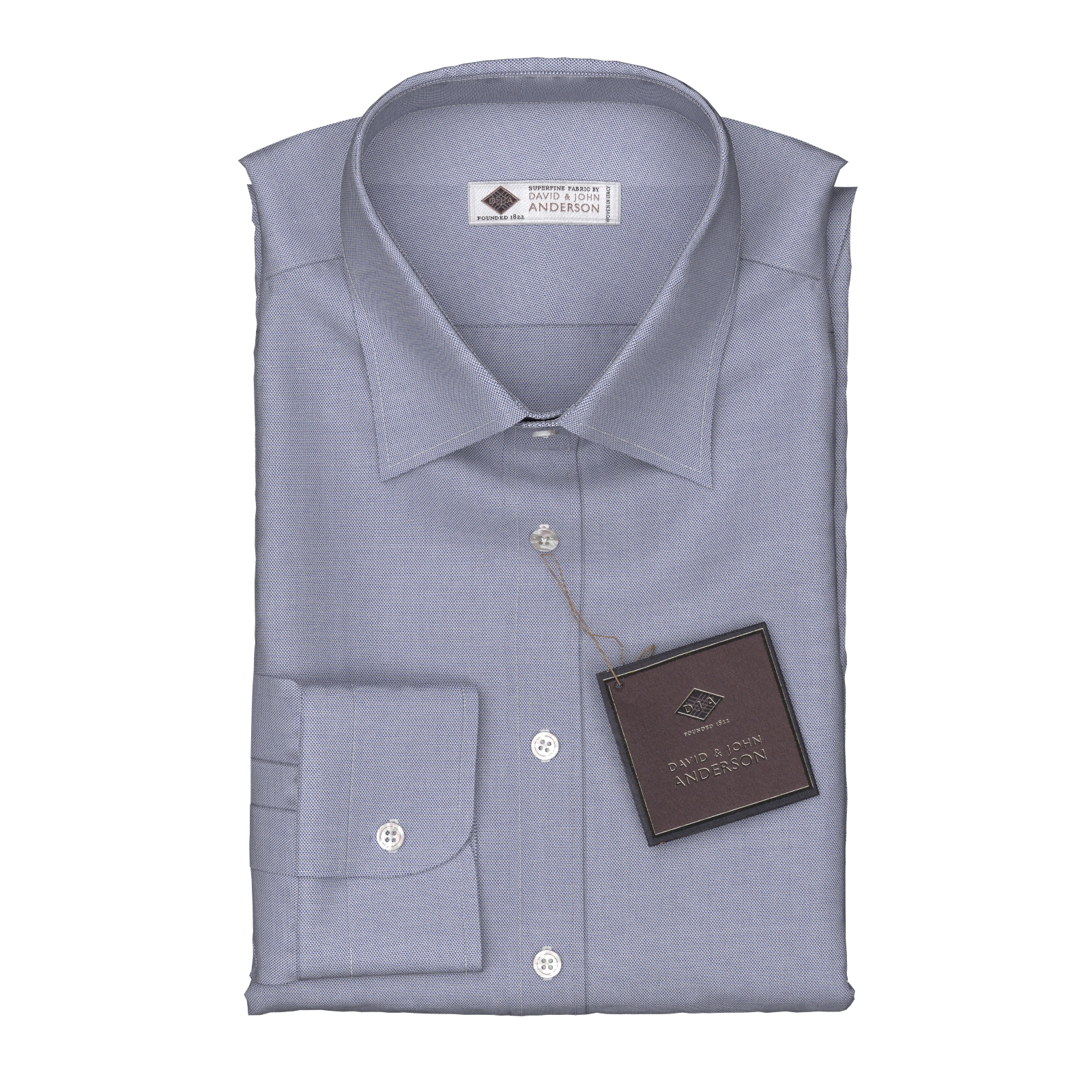 世界で一番細いとも言われる綿糸を使用し、シャツ生地の最上級に位置するDavid John Andersonのシルクのような200番手のネイビーロイヤルオックスフォードのシャツ生地です。