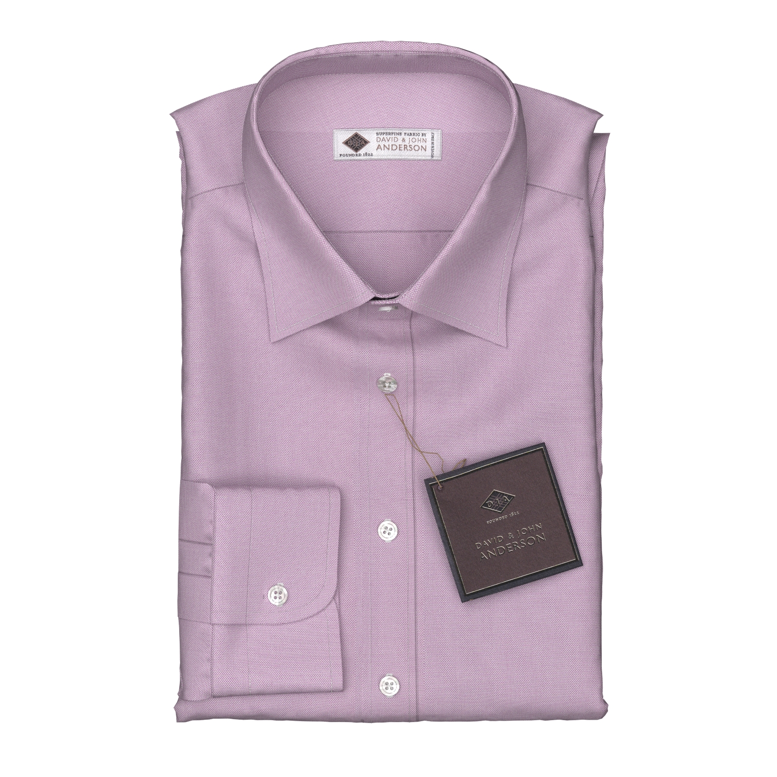 世界で一番細いとも言われる綿糸を使用し、シャツ生地の最上級に位置するDavid John Andersonのシルクのような200番手のパープルロイヤルオックスフォードのシャツ生地です。