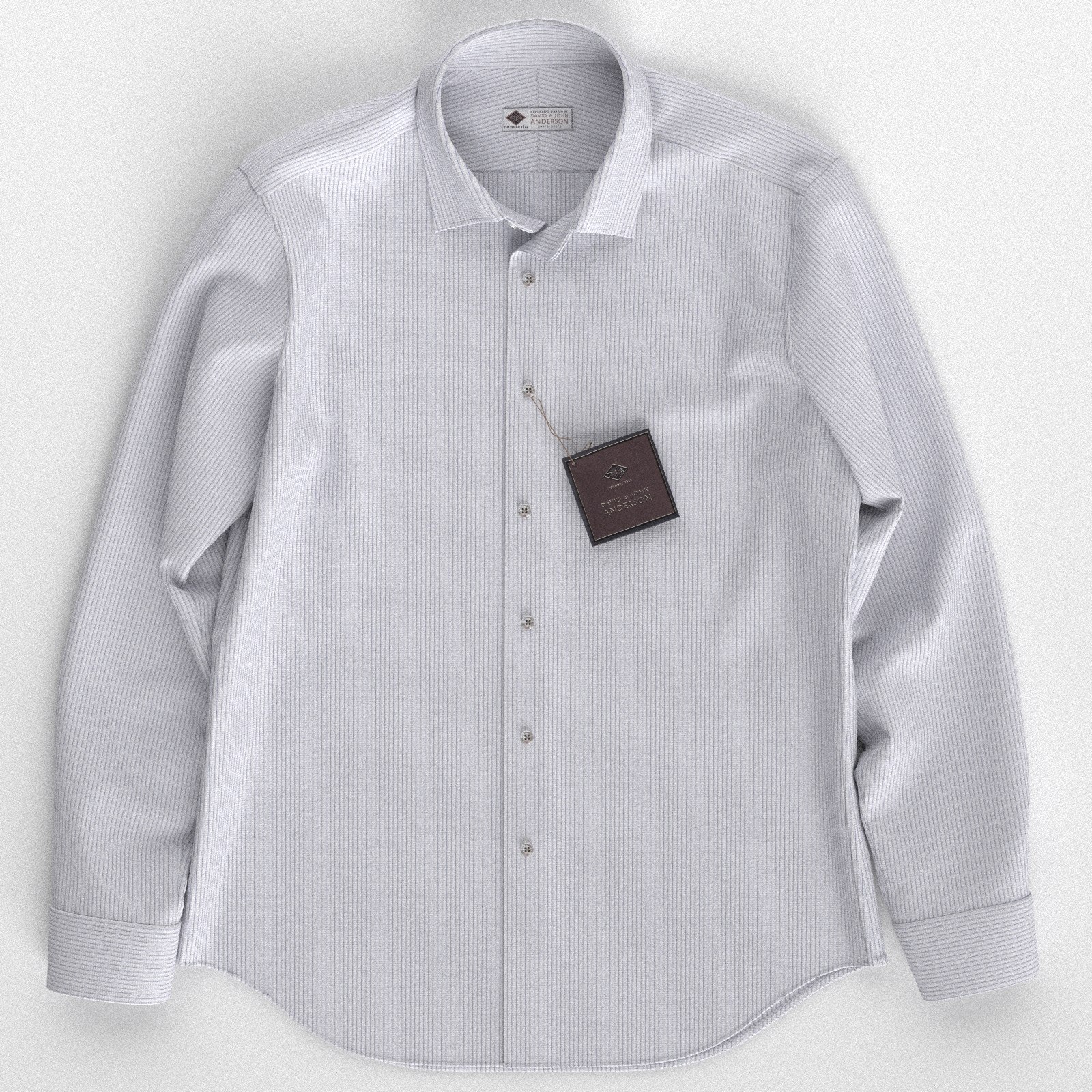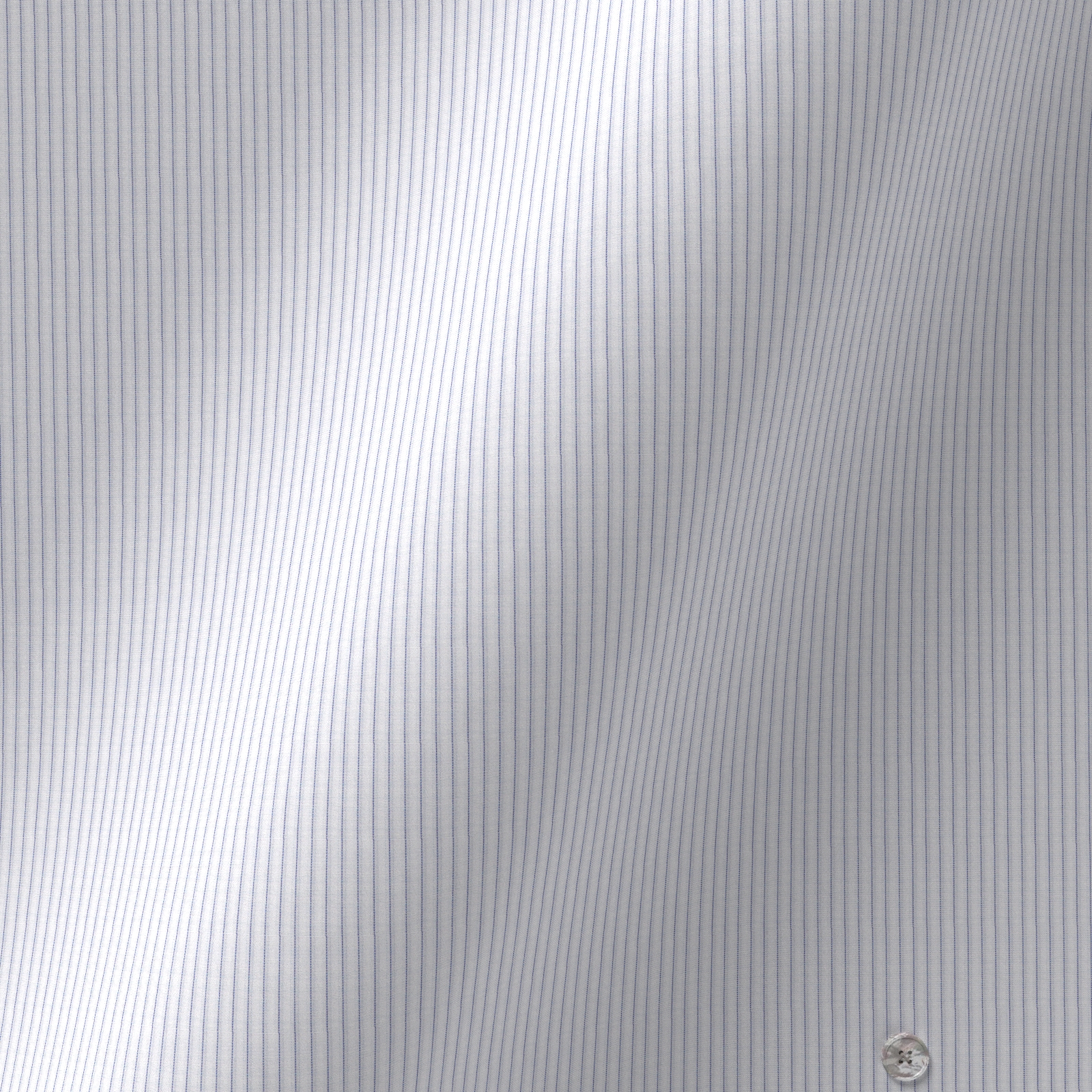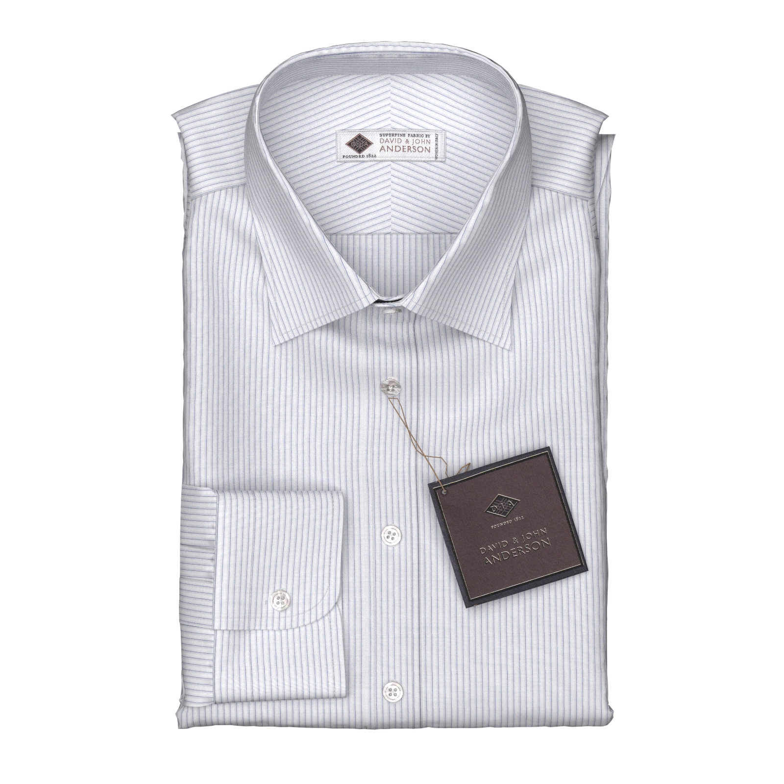 世界で一番細いとも言われる綿糸を使用し、シャツ生地の最上級に位置するDavid John Andersonのシルクのような200番手のネイビー ピンストライプのシャツ生地です。