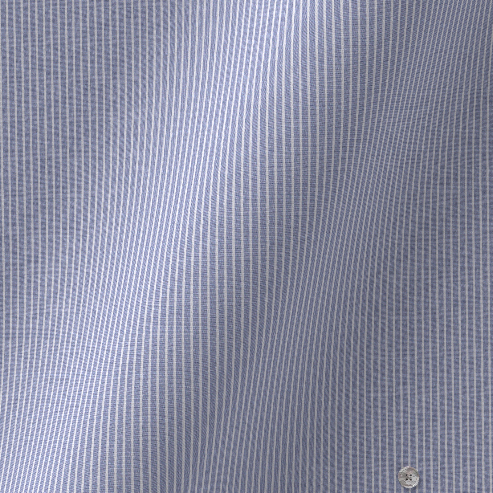 世界で一番細いとも言われる綿糸を使用し、シャツ生地の最上級に位置するDavid John Andersonのシルクのような200番手のネイビー白抜きストライプのシャツ生地です。