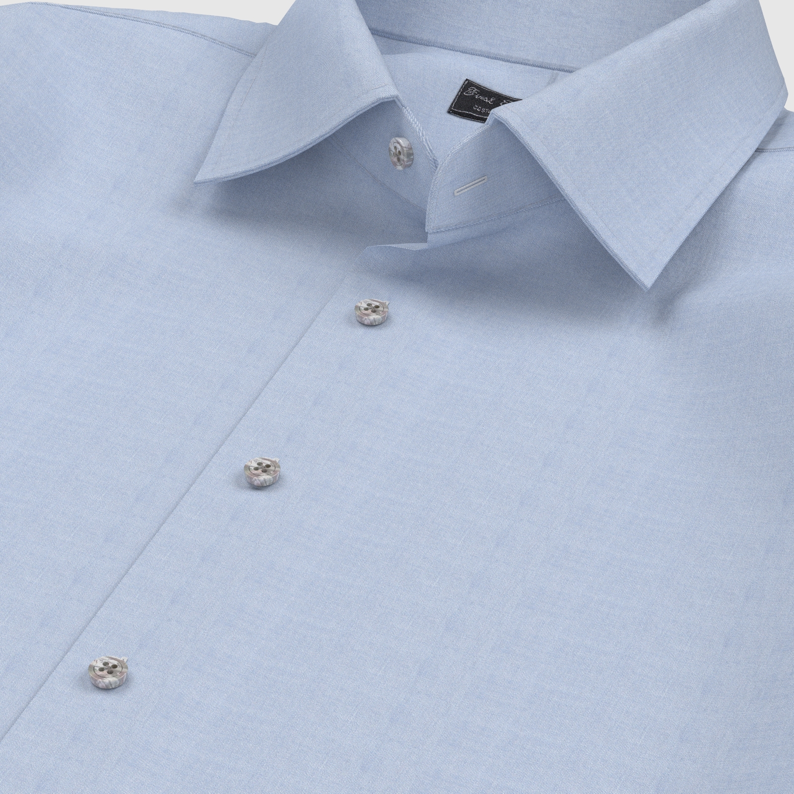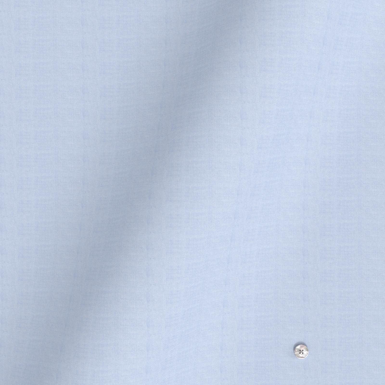 100双糸の上質で肉厚なサックスの綾織(細かなツイル)モイスト・リンクルフリー(新形態安定)素材です。家庭洗濯+軽いアイロンがけですっきり・きっちりと着こなせる忙しいビジネスマンにぴったりの素材です。肌触りも綿100%の風合いを損なわない着心地です。