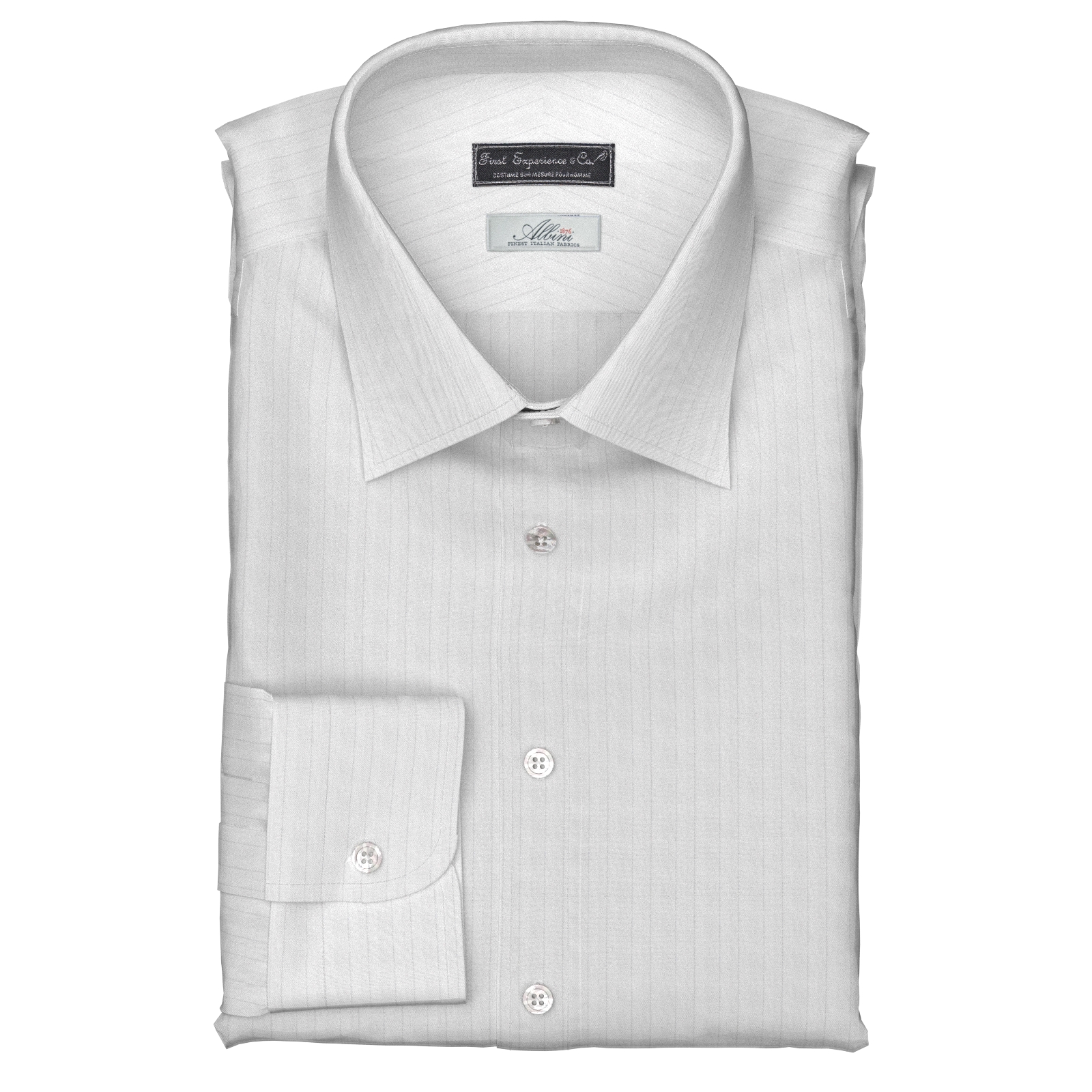 名門アルビニ社の光沢感があり陰影の美しいホワイトのドビーダブルストライプ生地です。