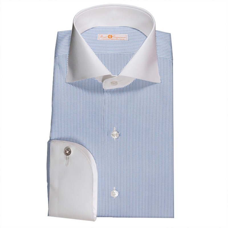 GIZA88の超長綿を使用した120双糸ガス焼きの上質なサックスのストライプ生地です。