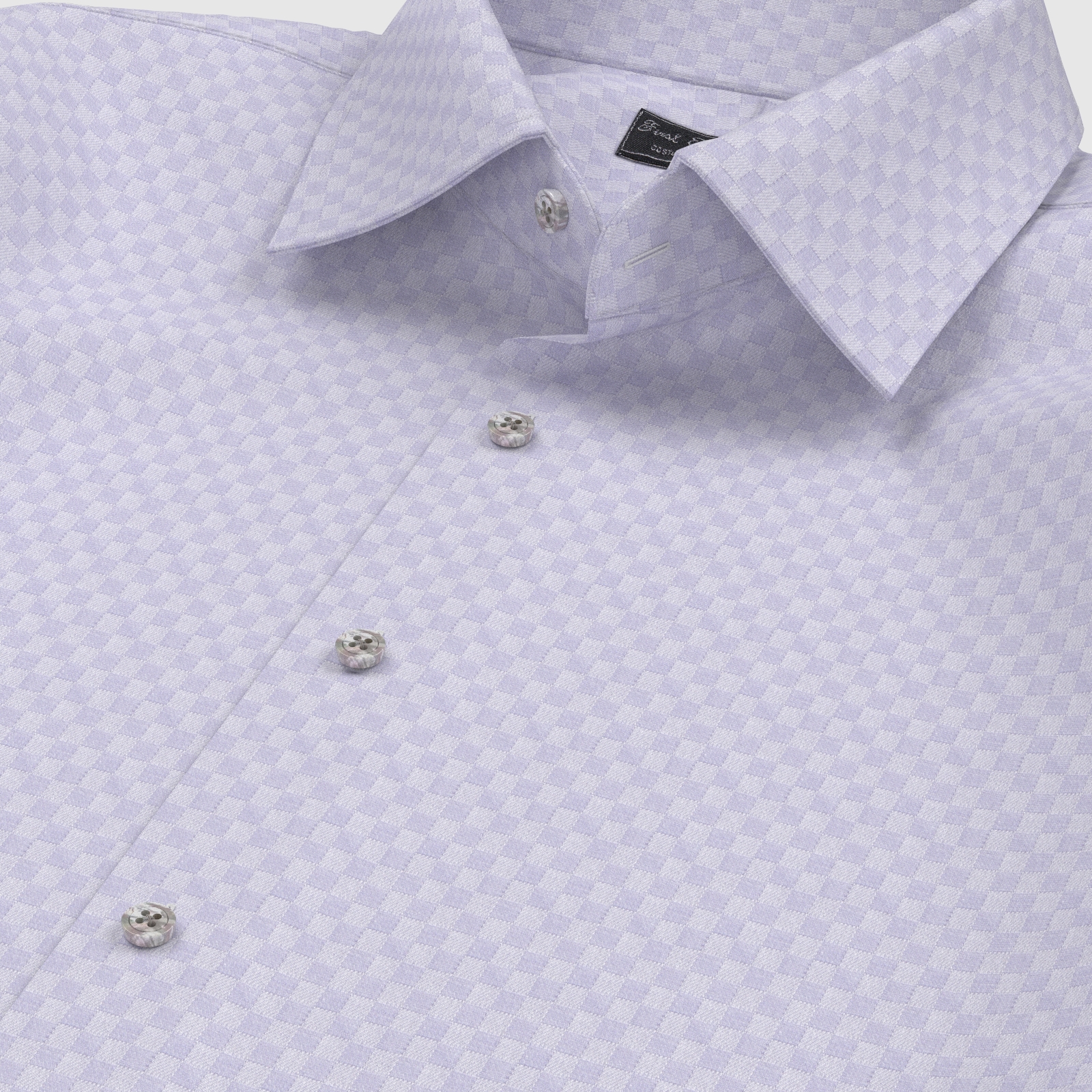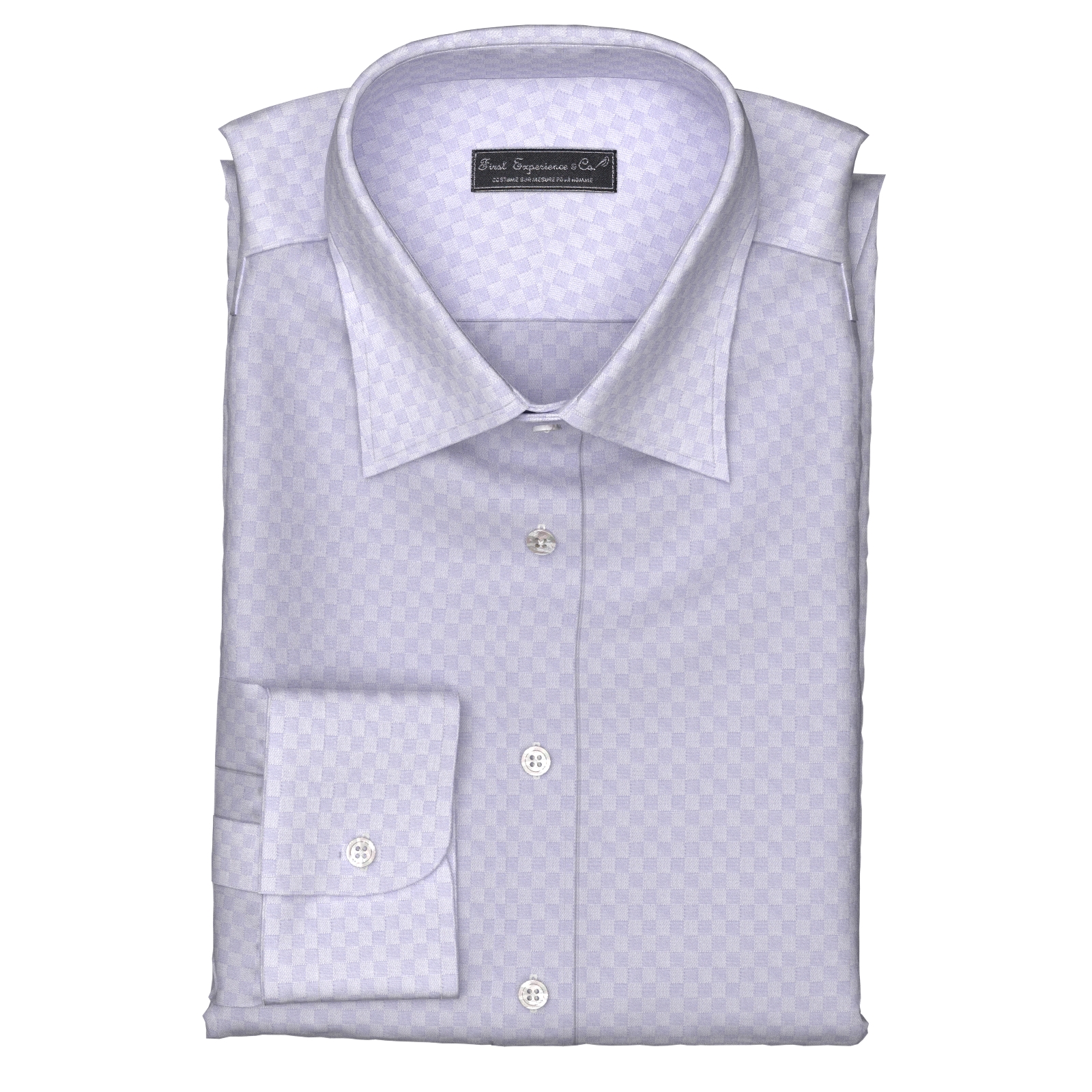 光沢感のあるパープルのチェッカードビー柄の綿100%イージーケア素材です。家庭洗濯+軽いアイロンがけですっきり・きっちりと着こなせる忙しいビジネスマンにぴったりの素材です。肌触りも綿100%の風合いを損なわない着心地です。