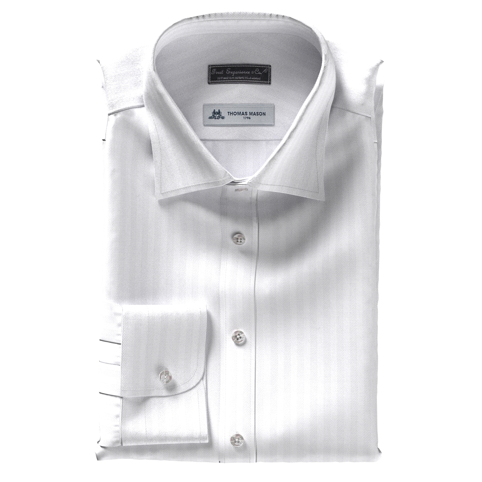 トーマスメイソンSilver Line100双糸のホワイト・ヘリンボーン生地となります。