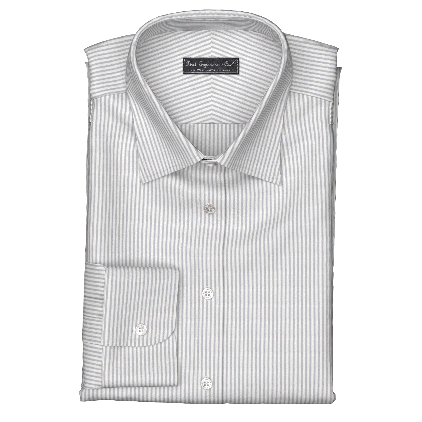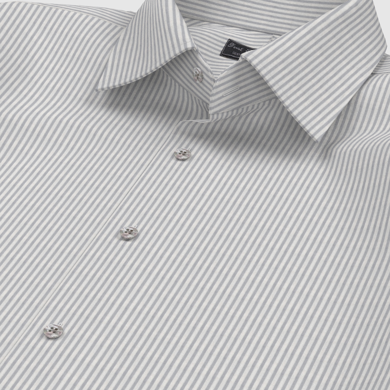 上質な国産の形態安定TC(綿×ポリエステル)素材のグレー・ロンドンストライプ生地となります。