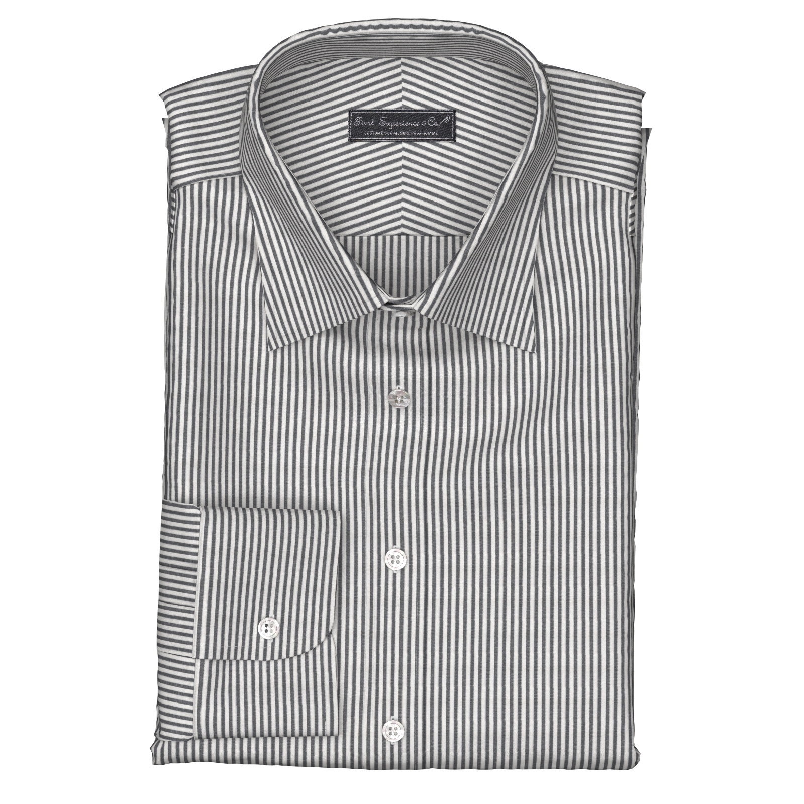 上質な国産の形態安定TC(綿×ポリエステル)素材のブラック・ロンドンストライプ生地となります。