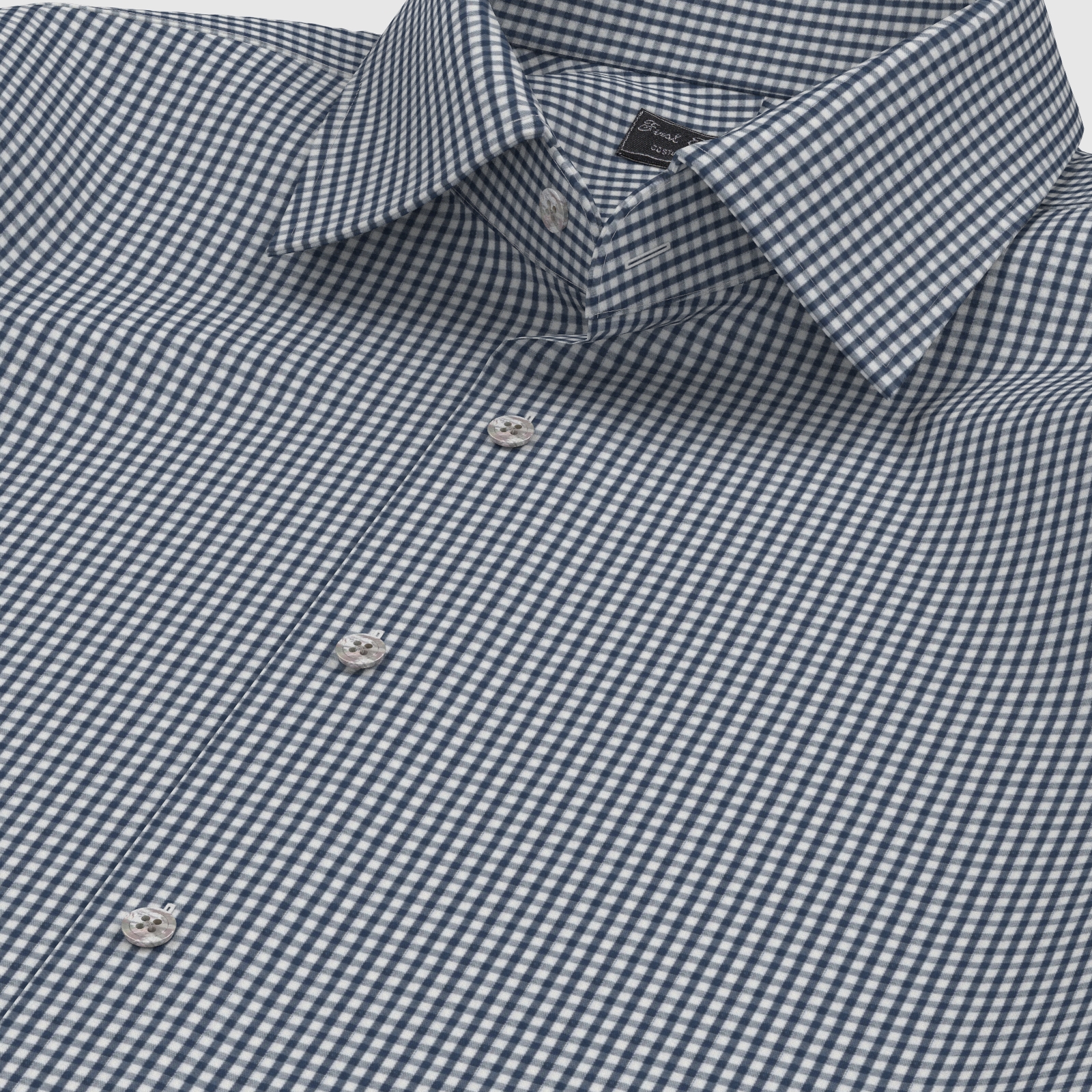 上質な国産の形態安定TC(綿×ポリエステル)素材のネイビー・ギンガムチェック生地となります。