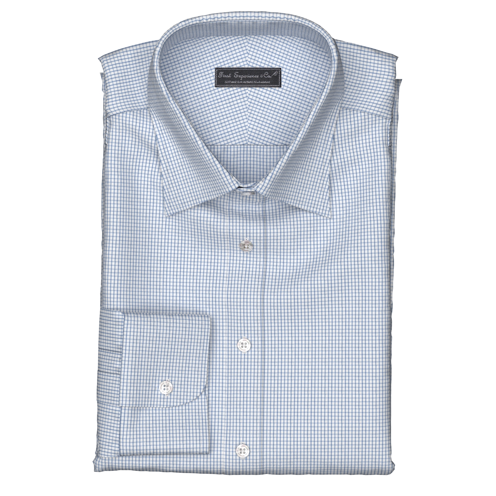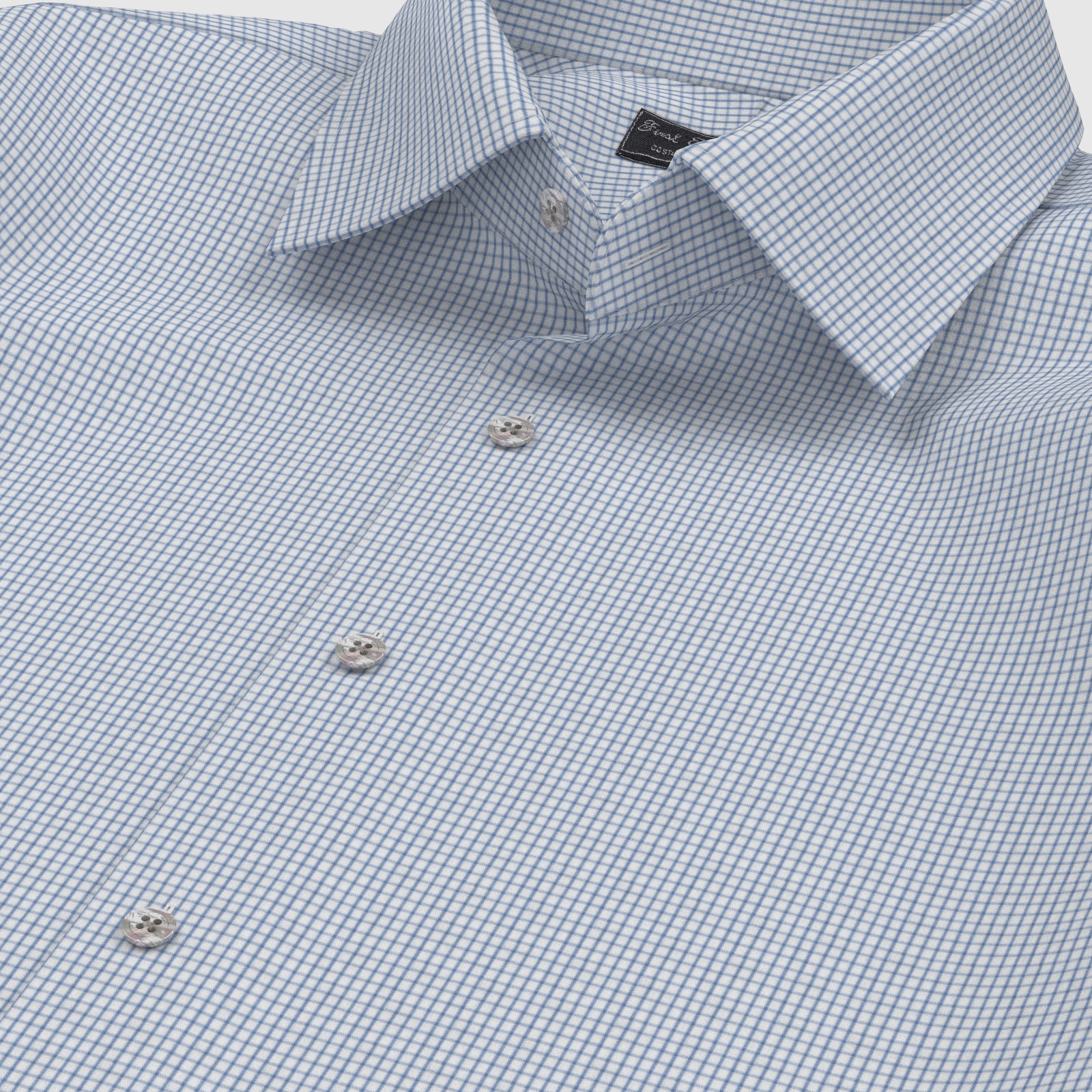上質な国産の形態安定TC(綿×ポリエステル)素材のブルーのグラフチェック生地となります。