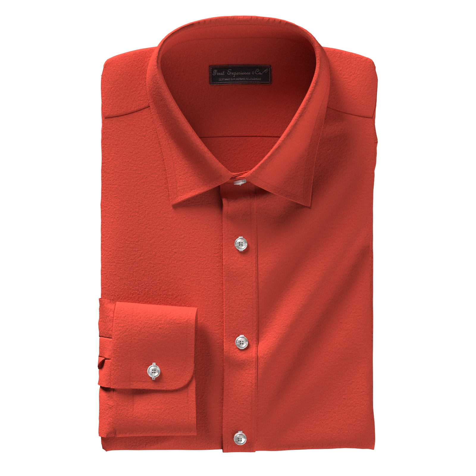 表面を起毛させた少しウオーム感のあるブラッドオレンジのコットン・フランネル生地です。羽織る感じでも着れるユーティリティ性の高いシャツ素材ですので、秋口から長い期間ご着用いただけます。