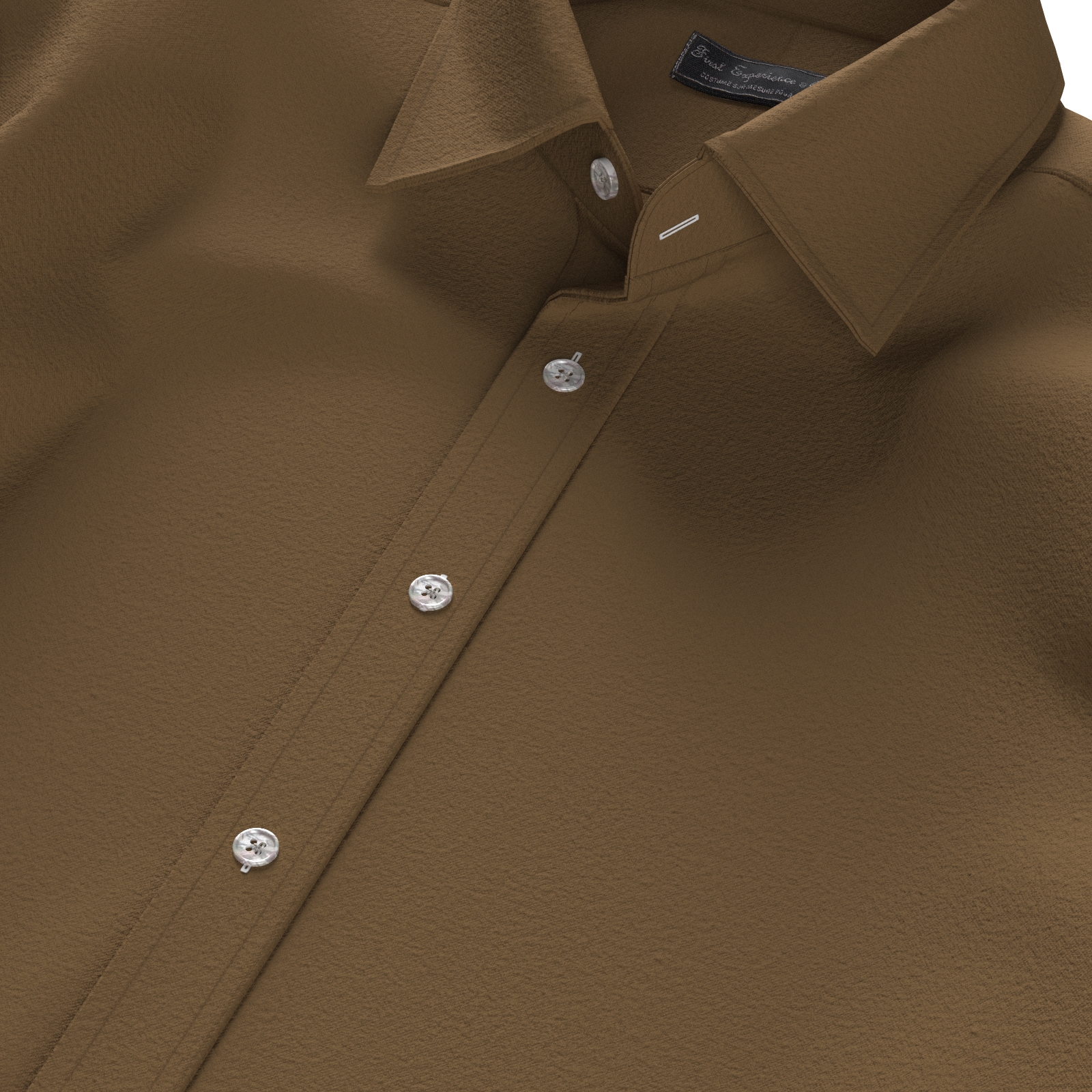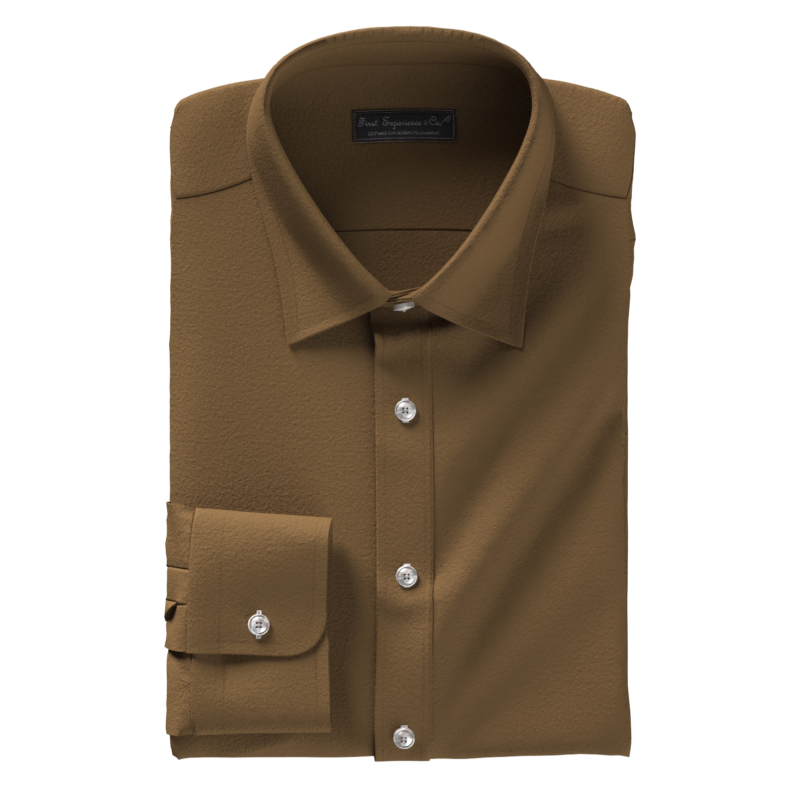 表面を起毛させた少しウオーム感のあるキャメルブラウンのコットン・フランネル生地です。羽織る感じでも着れるユーティリティ性の高いシャツ素材ですので、秋口から長い期間ご着用いただけます。