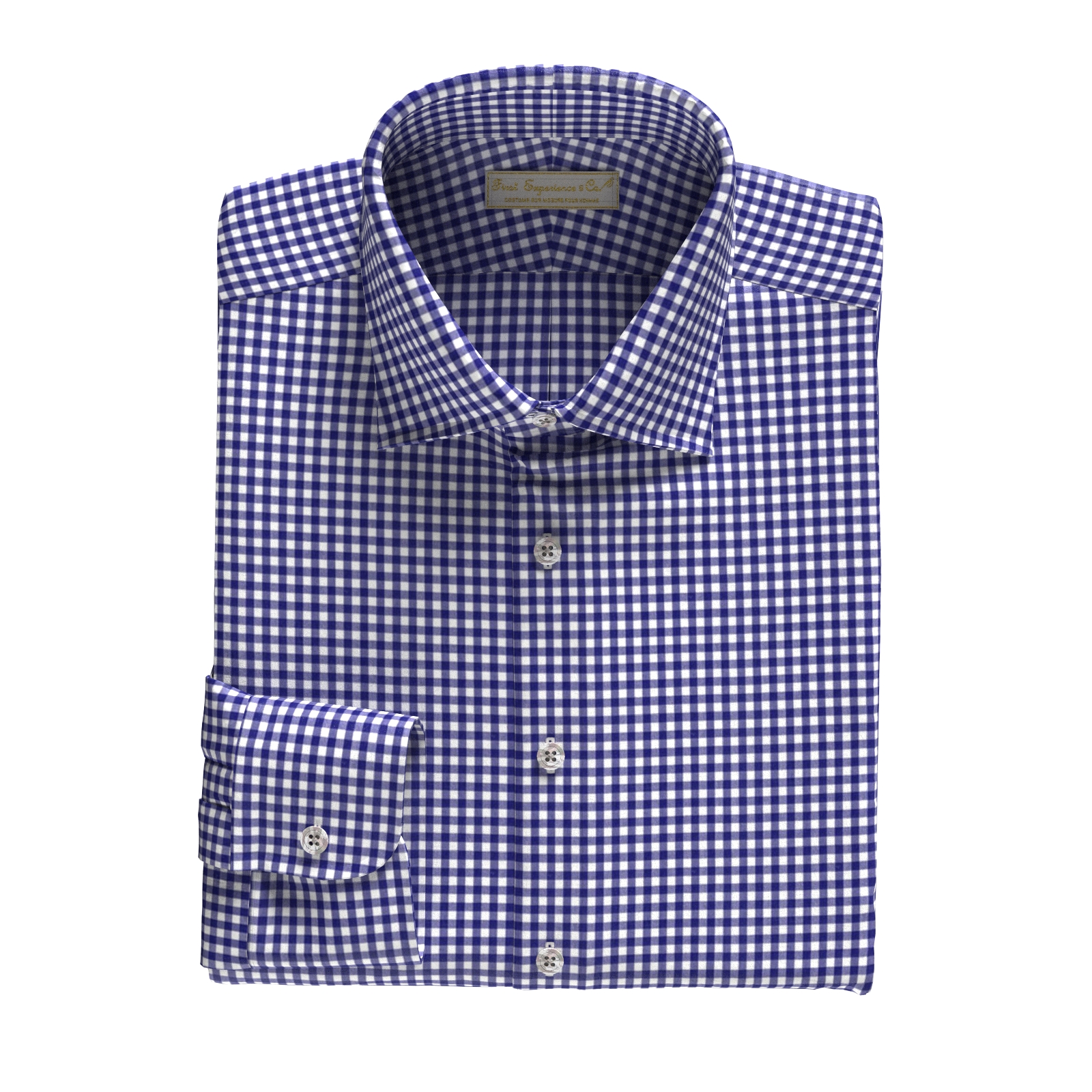 50Sのストレッチ糸を使用した心地よいネイビー・ギンガムチェックです。きれいな表面感とハリのある風合い、なめらかな伸縮性が特徴です。