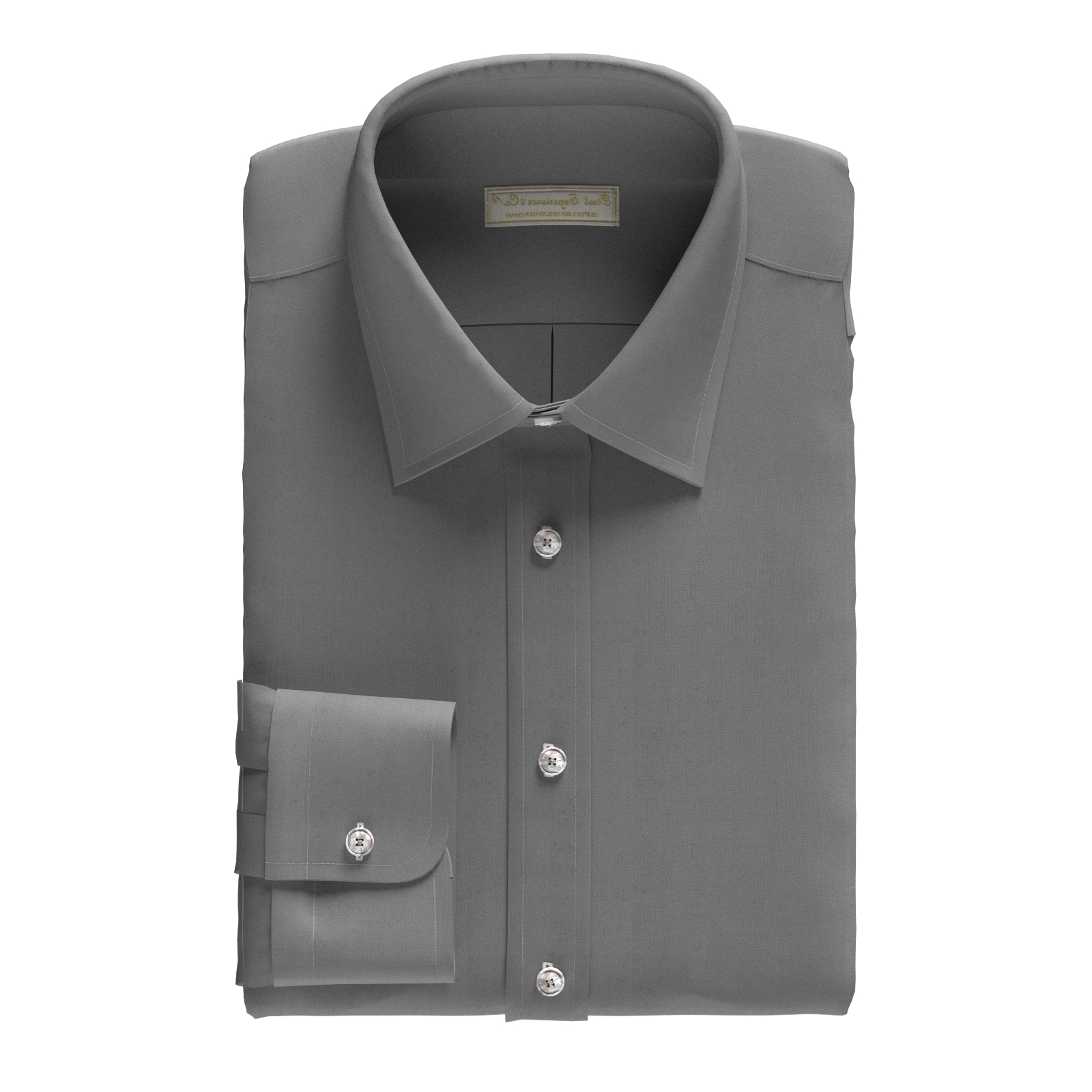 打ち込み本数200本の高密度できれいな表面感のグレー・ブロード。適度な光沢感があり、やや薄手ながら透け感のない素材。ハリのあるさらっとした肌ざわりです。