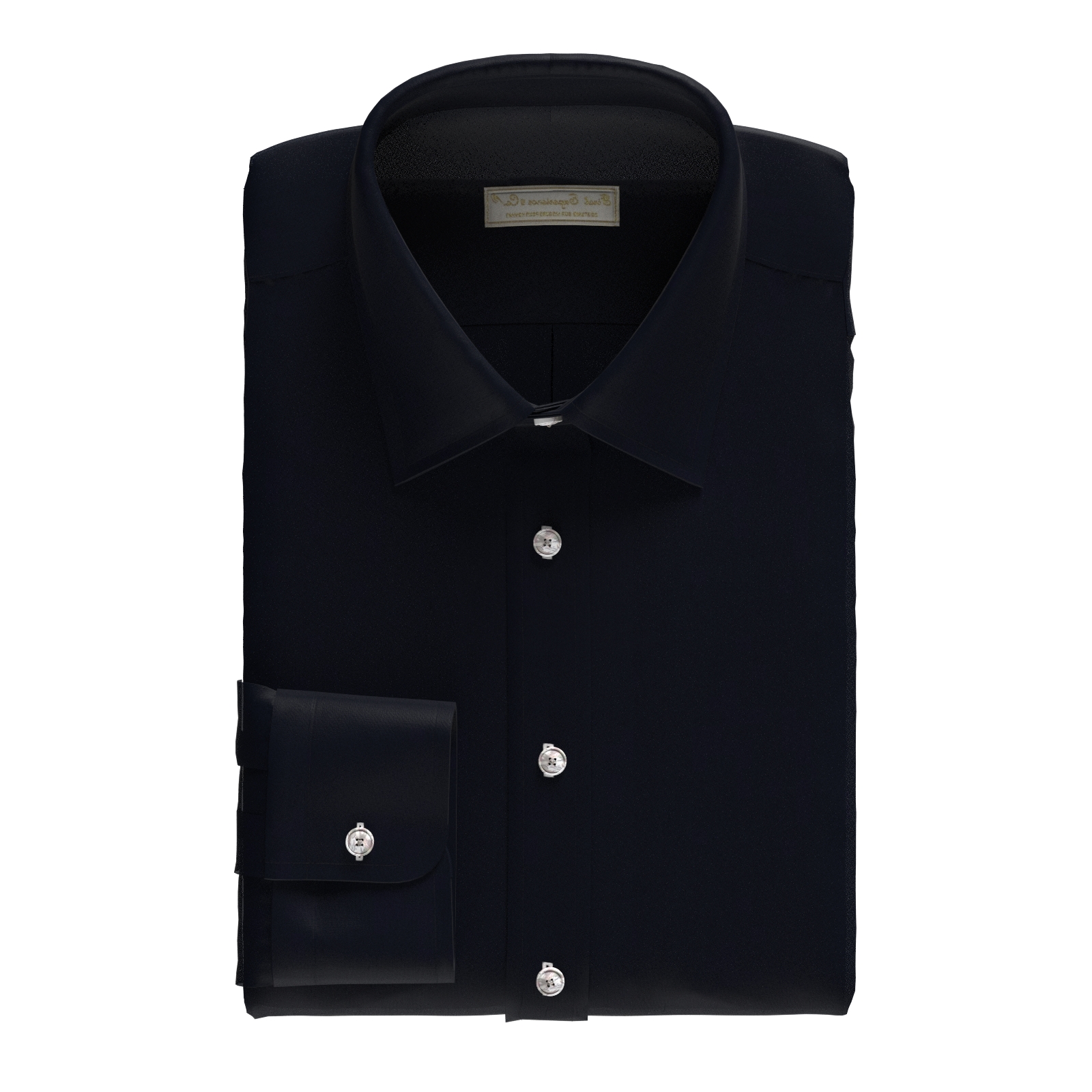 打ち込み本数200本の高密度できれいな表面感のピュアブラック(真黒)・ブロード。適度な光沢感があり、やや薄手ながら透け感のない素材。ハリのあるさらっとした肌ざわりです。