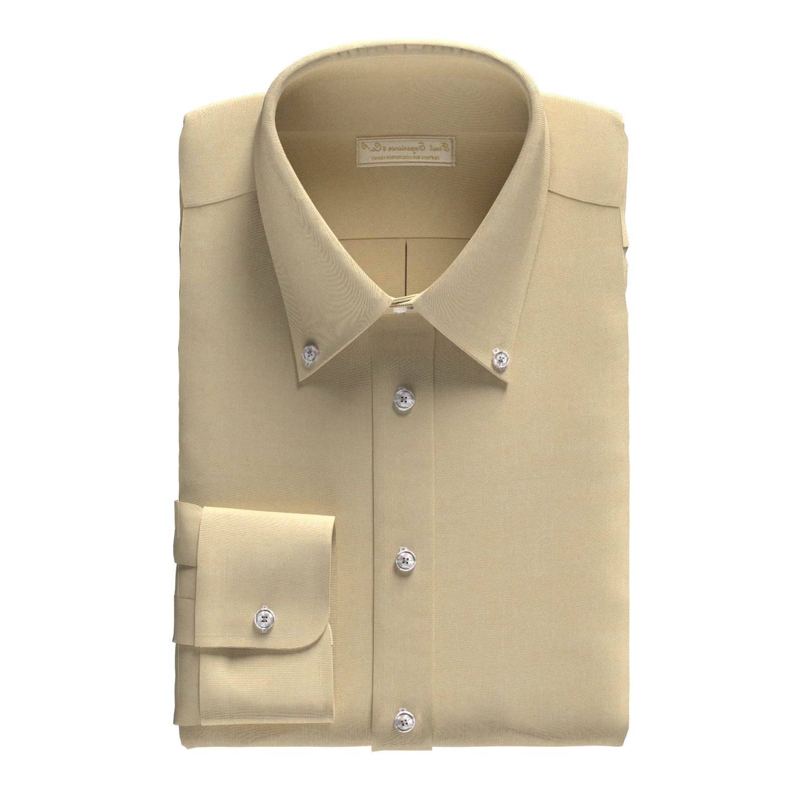 タテ・ヨコに100/2の超長綿を使った、MADE IN JAPANの上質なクリームイエロー・シャンブレー。やや薄手で、ほどよいハリとツヤがある風合いの上品なシャツ素材です。
