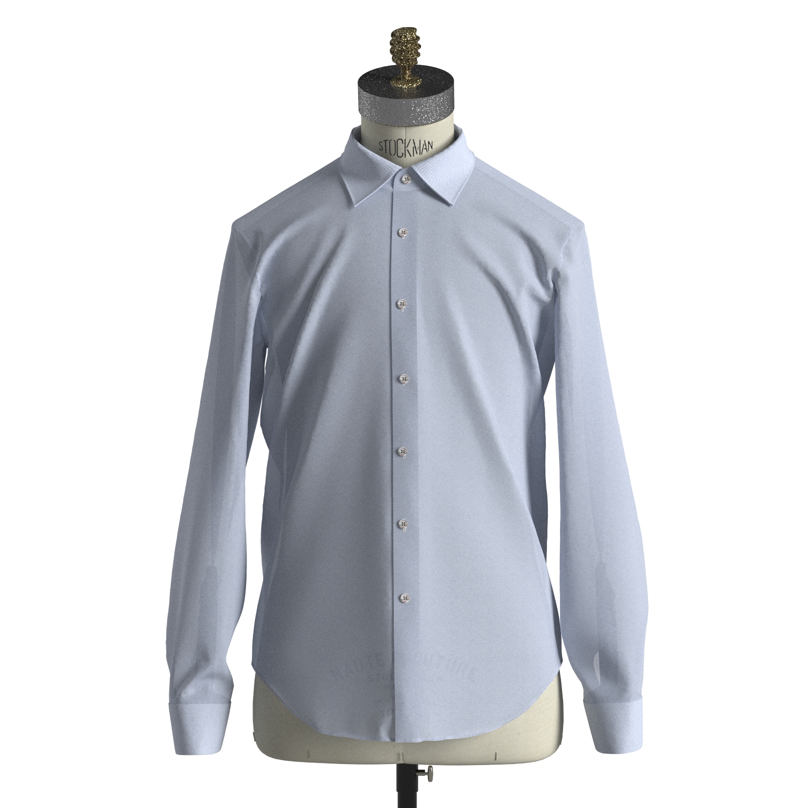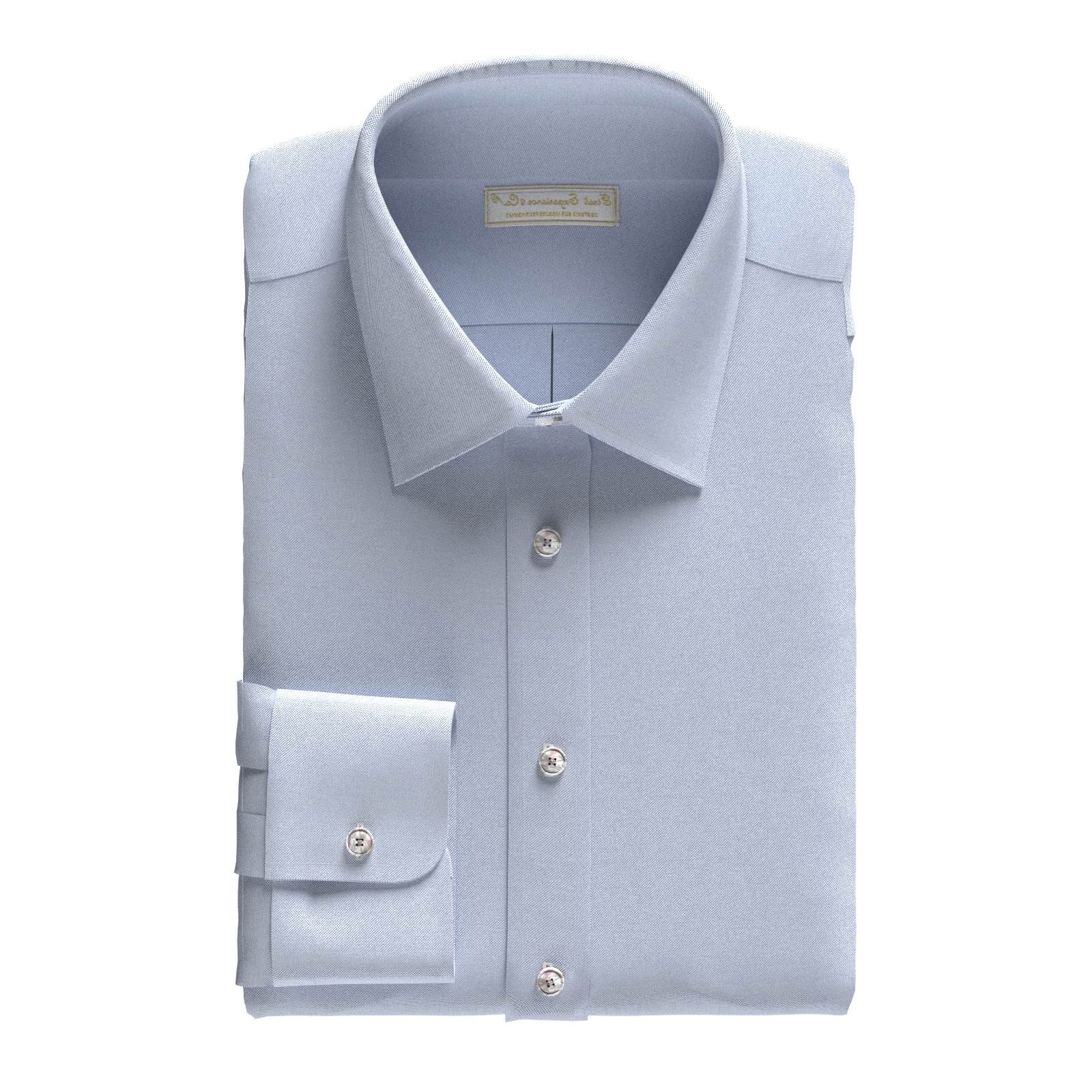 きれいな表面感と、やわらかくふっくらとした風合いが特徴的な80双糸の上質サックス・ピンポイントオックスフォードシャンブレーです。