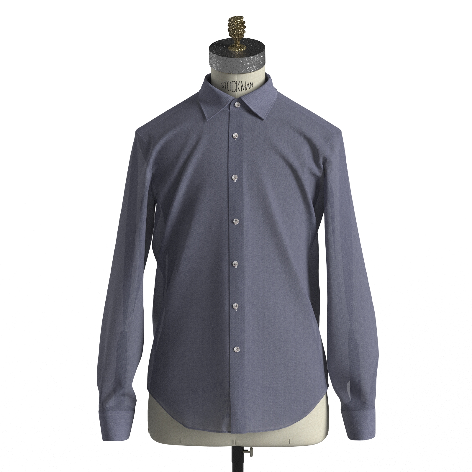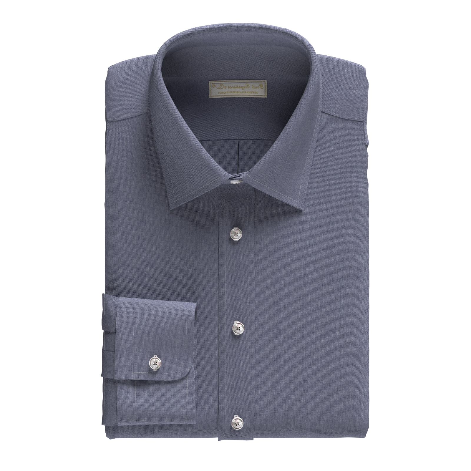 きれいな表面感と、やわらかくふっくらとした風合いが特徴的な80双糸の上質ネイビー・ピンポイントオックスフォードシャンブレーです。