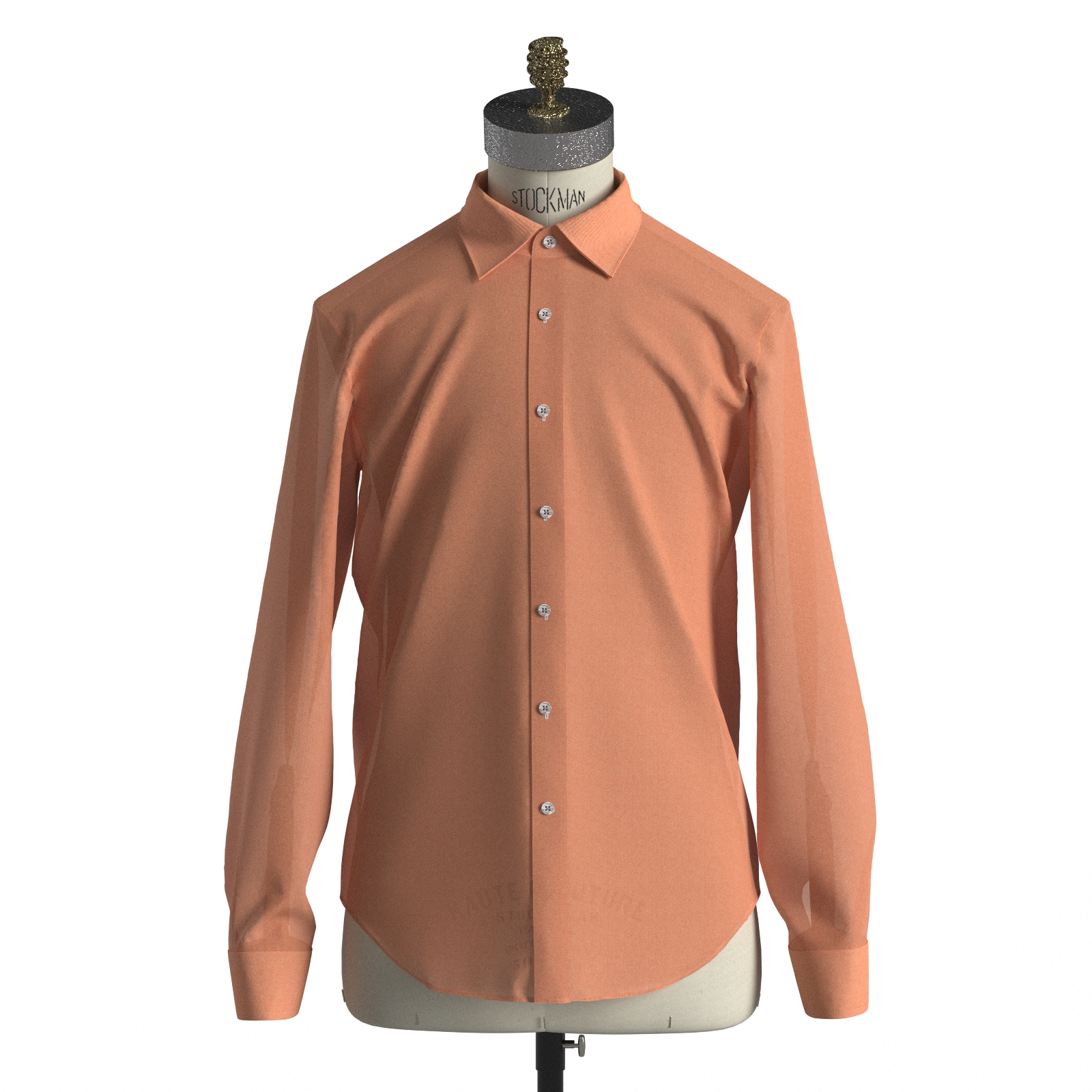 きれいな表面感と、やわらかくふっくらとした風合いが特徴的な80双糸の上質オレンジ・ピンポイントオックスフォードシャンブレーです。