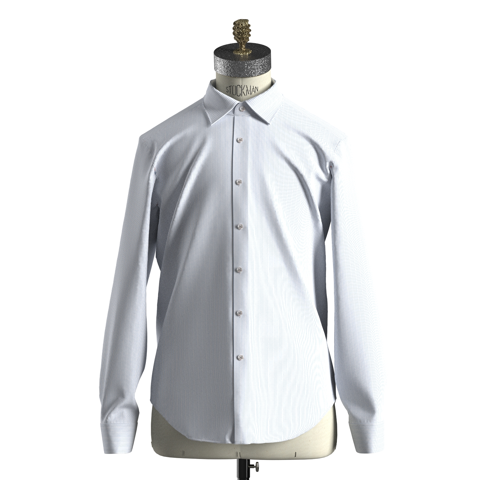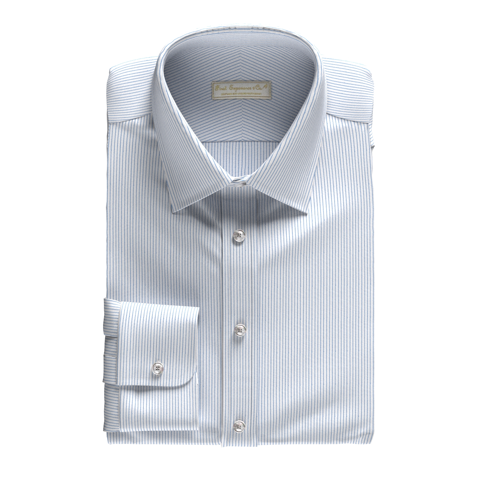 100双糸の上質なブルーストライプの綿100%イージーケア素材です。家庭洗濯+軽いアイロンがけですっきり・きっちりと着こなせる忙しいビジネスマンにぴったりの素材です。肌触りも綿100%の風合いを損なわない着心地です。
