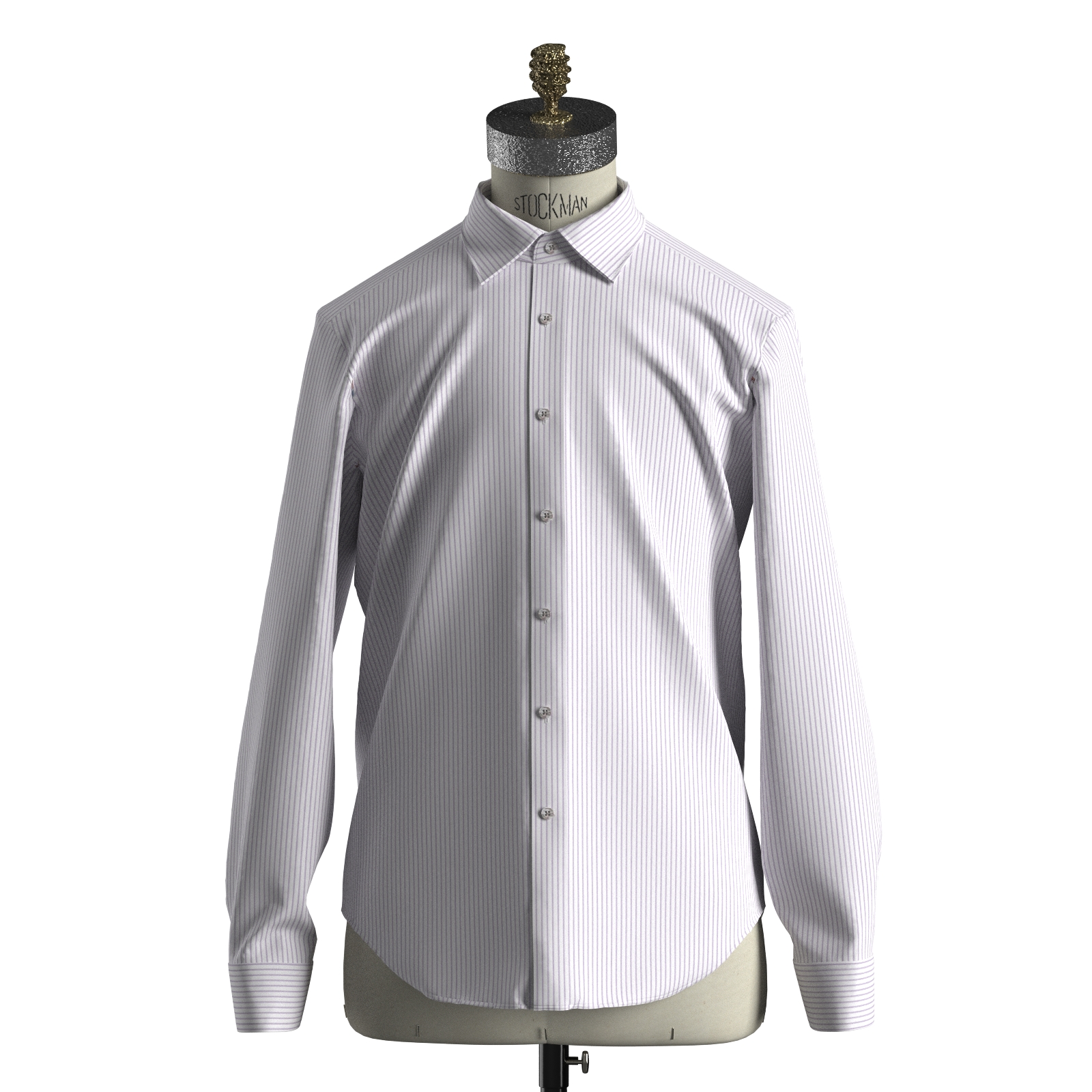 100双糸の上質なパープル濃淡のグループストライプにヘリンボーン織のような波目の綿100%イージーケア素材です。家庭洗濯+軽いアイロンがけですっきり・きっちりと着こなせる忙しいビジネスマンにぴったりの素材です。肌触りも綿100%の風合いを損なわない着心地です。