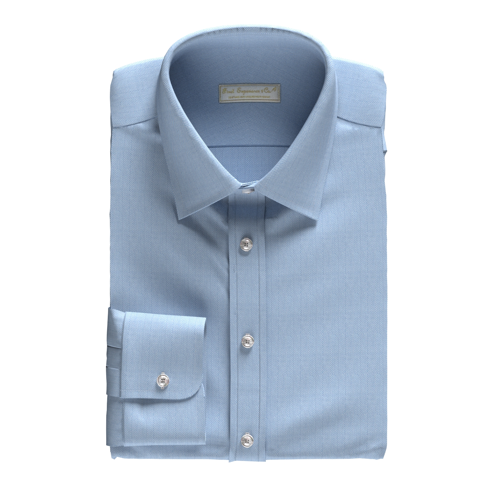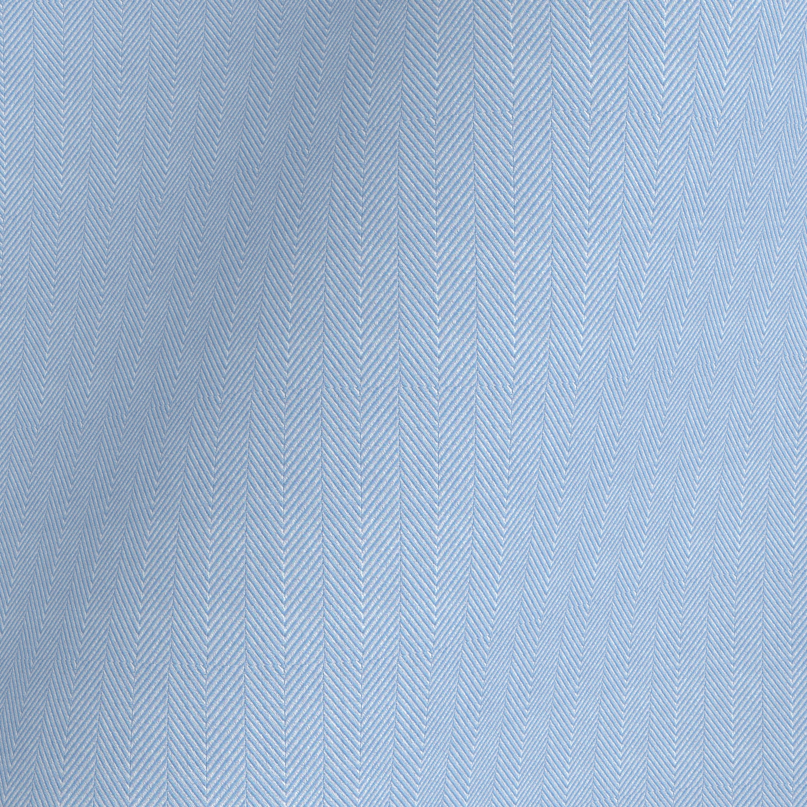 100双糸と上質なブルーの細かなヘリンボーン織の綿100%イージーケア素材です。家庭洗濯+軽いアイロンがけですっきり・きっちりと着こなせる忙しいビジネスマンにぴったりの素材です。肌触りも綿100%の風合いを損なわない着心地です。