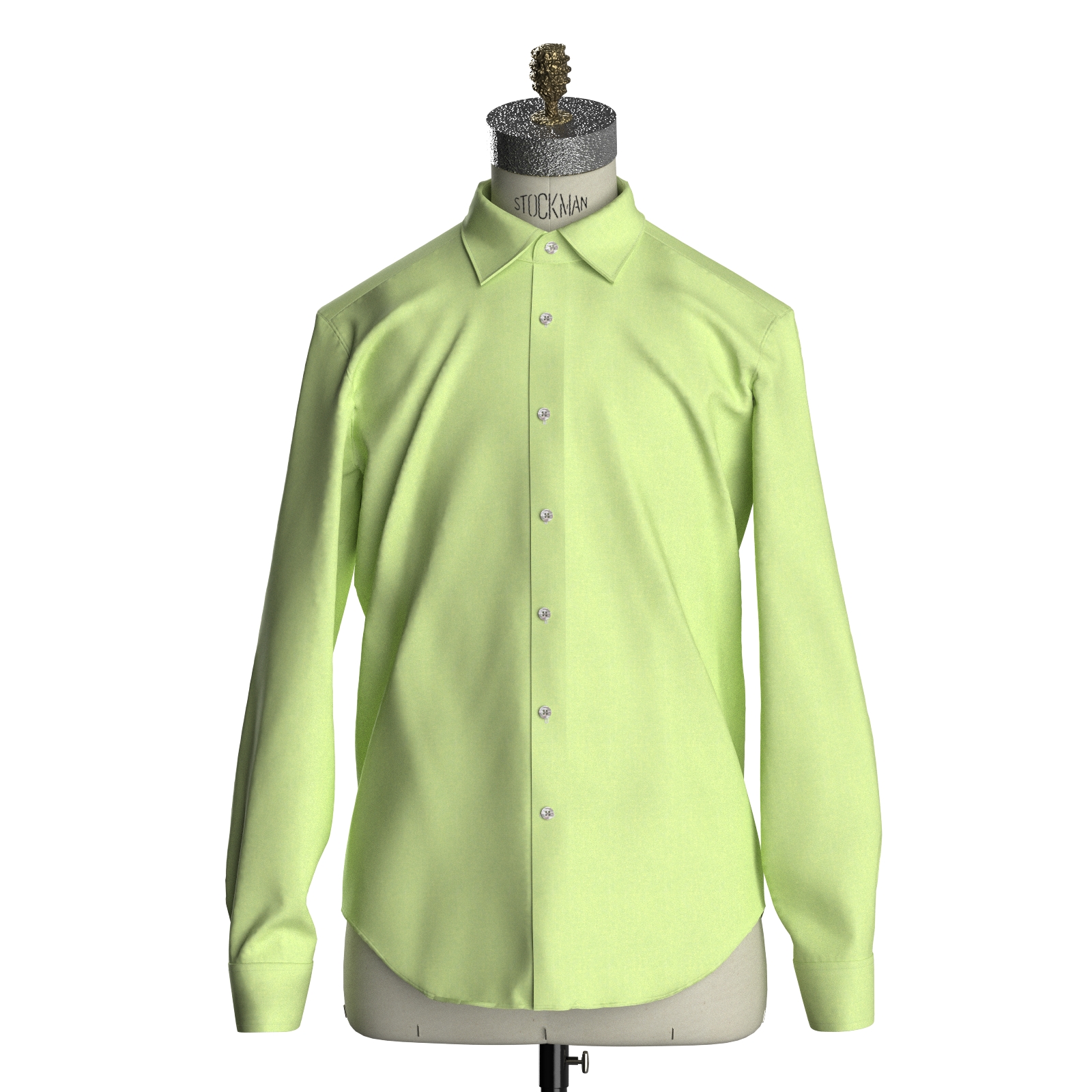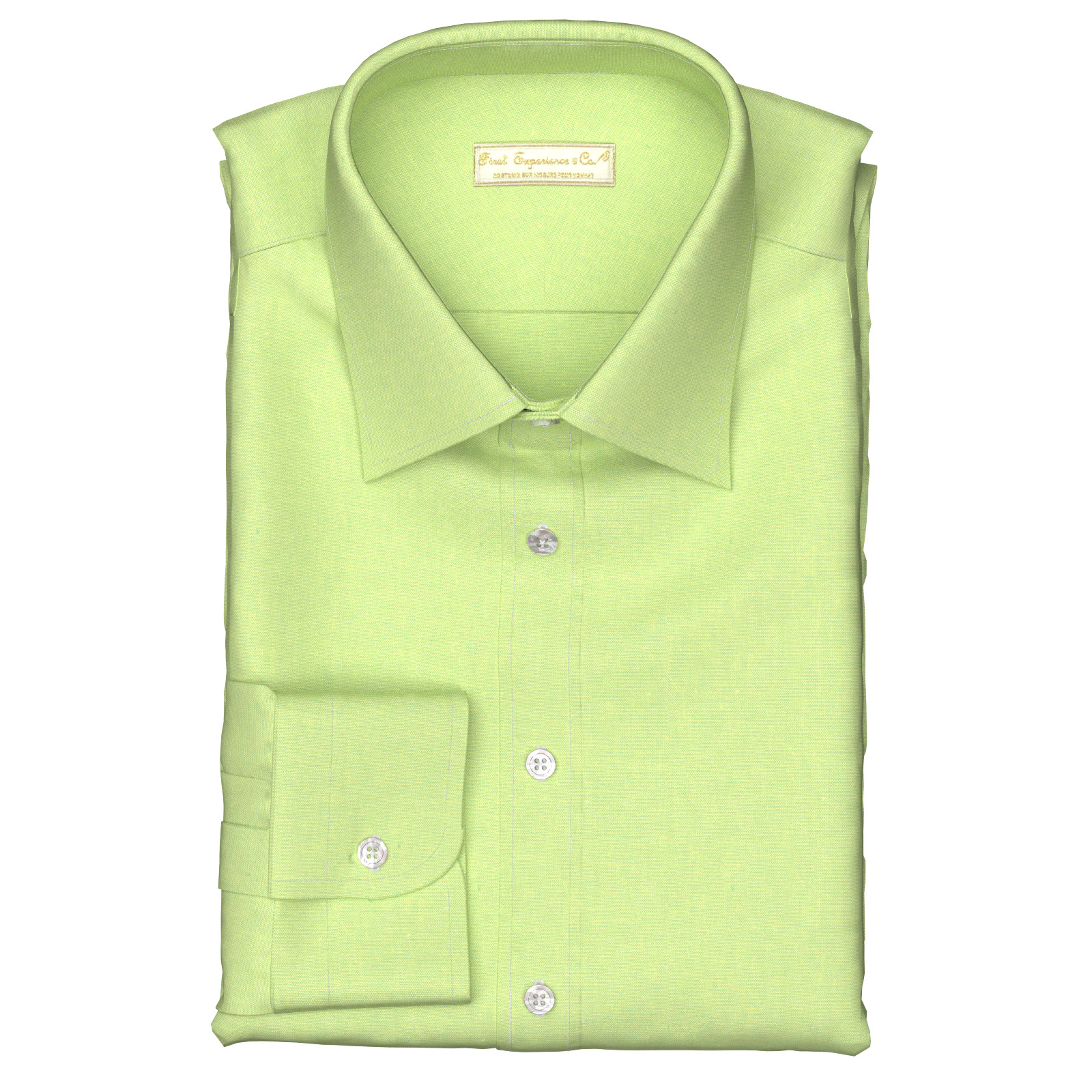 やや中肉厚のざっくりとした表面感で、ソフトな肌ざわりが特徴のベーシックな綿100%のライムグリーン・ダンガリー生地です。