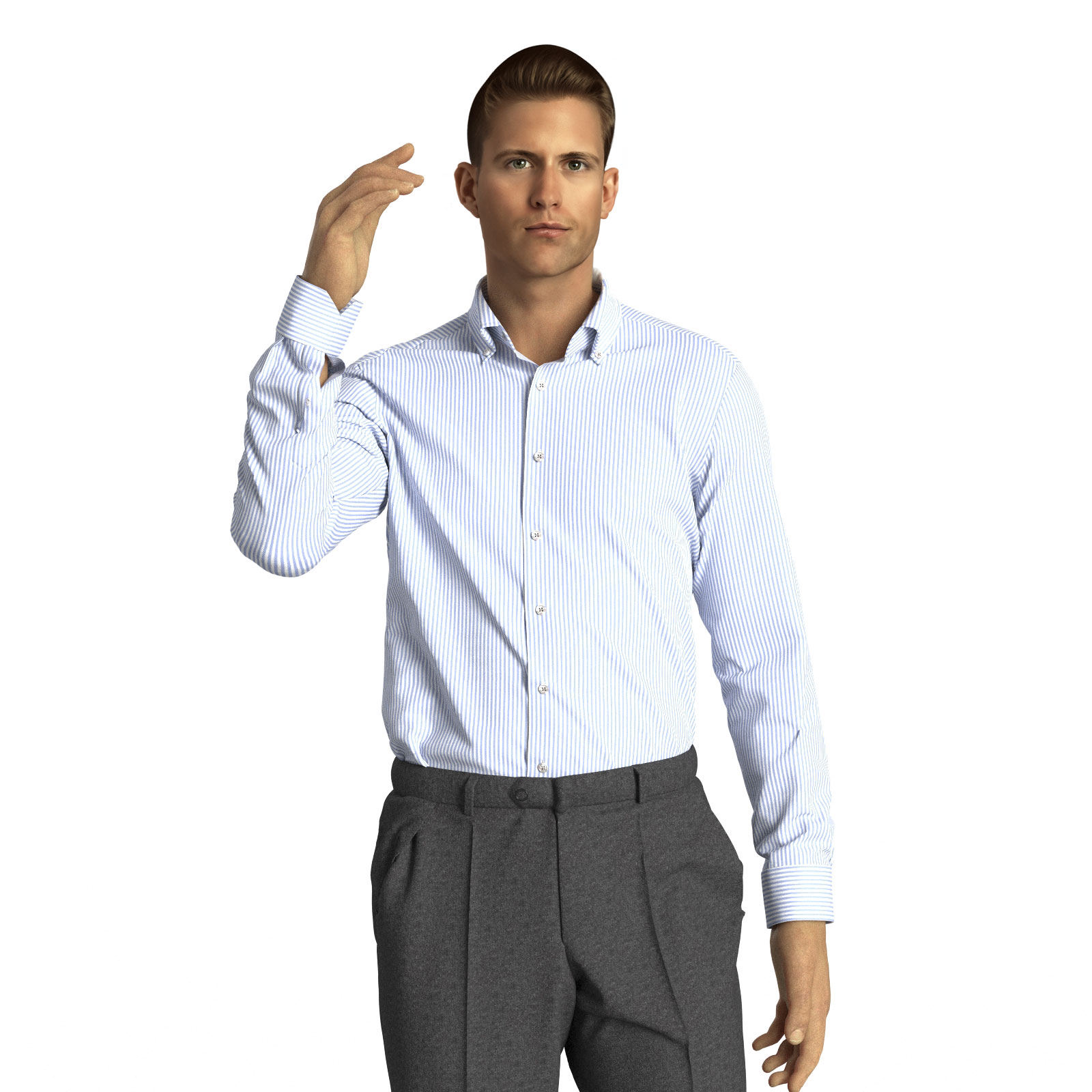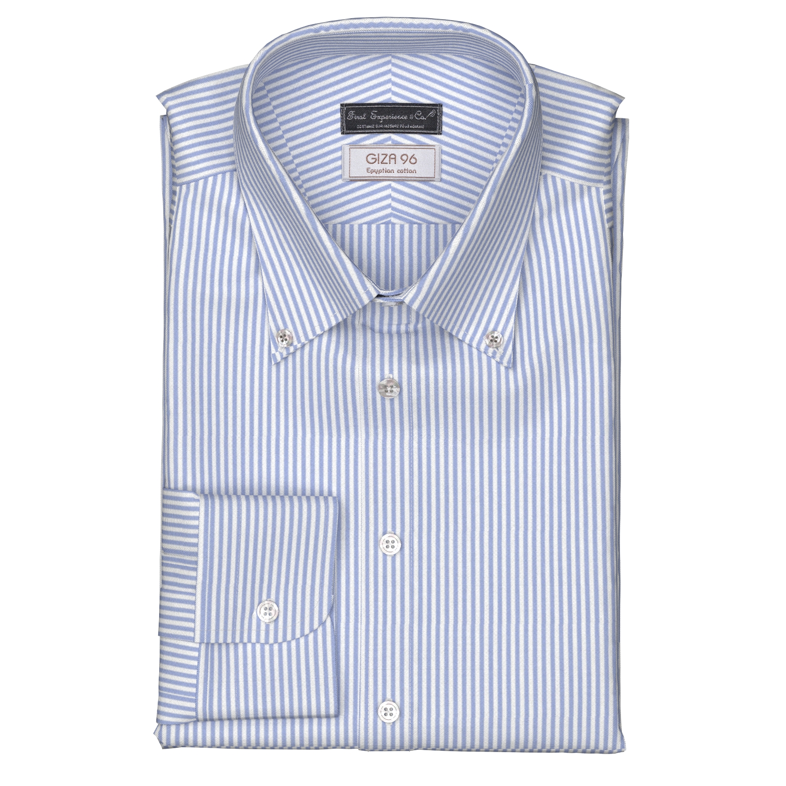GIZA96の超長綿を使用した100双糸ガス焼きの上質なサックスストライプ・オックスフォード生地です。