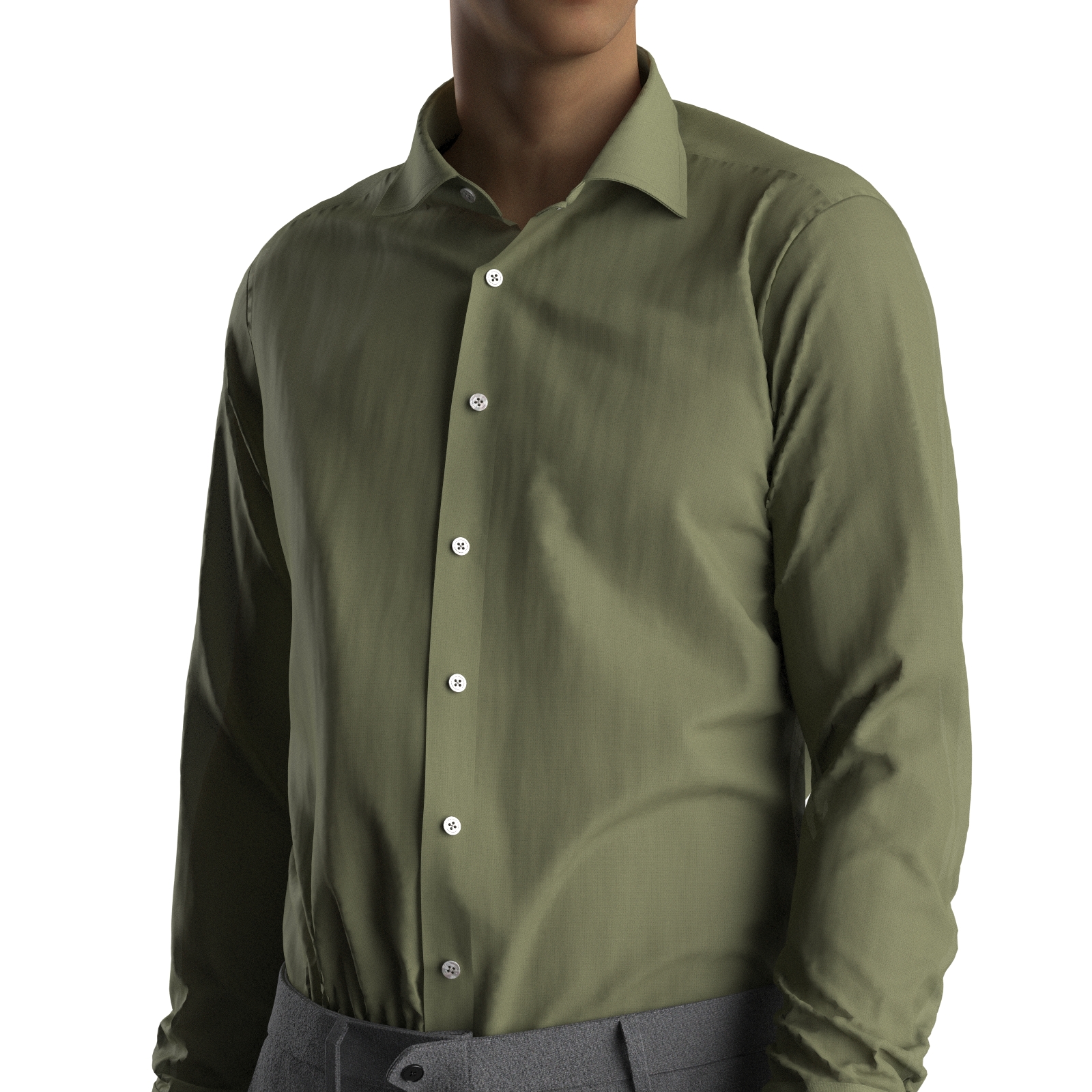 ざっくりとしたルックスの綿/麻(リネンラミー)のオリーブ・シーチング生地となります。やや薄手で、ナチュラルでドライな風合いが特徴です。