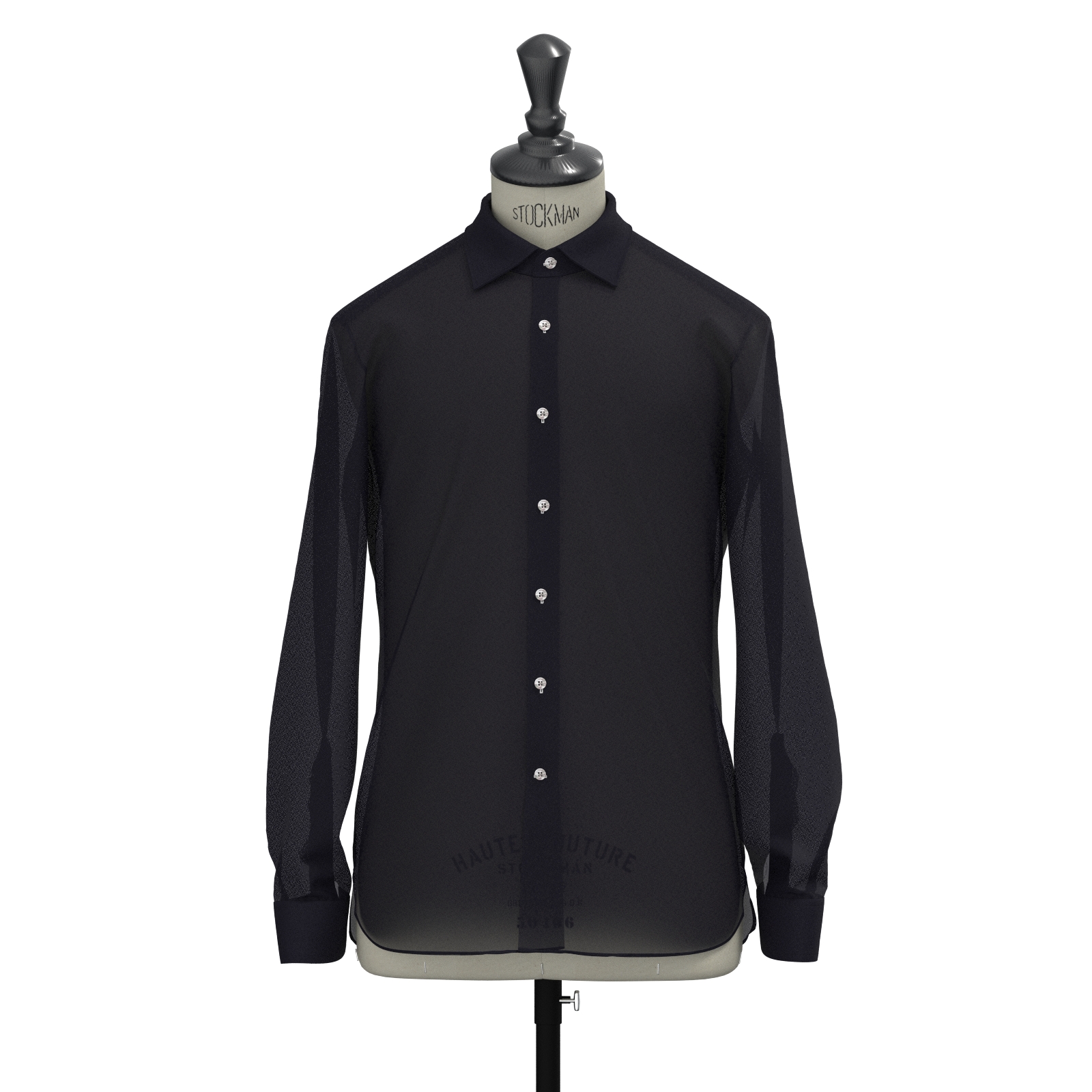 コットンのさらっとした風合いはそのままにポリエステルを混紡する事でしっかりとした風合いに仕上げたネイビーのブロード生地です。