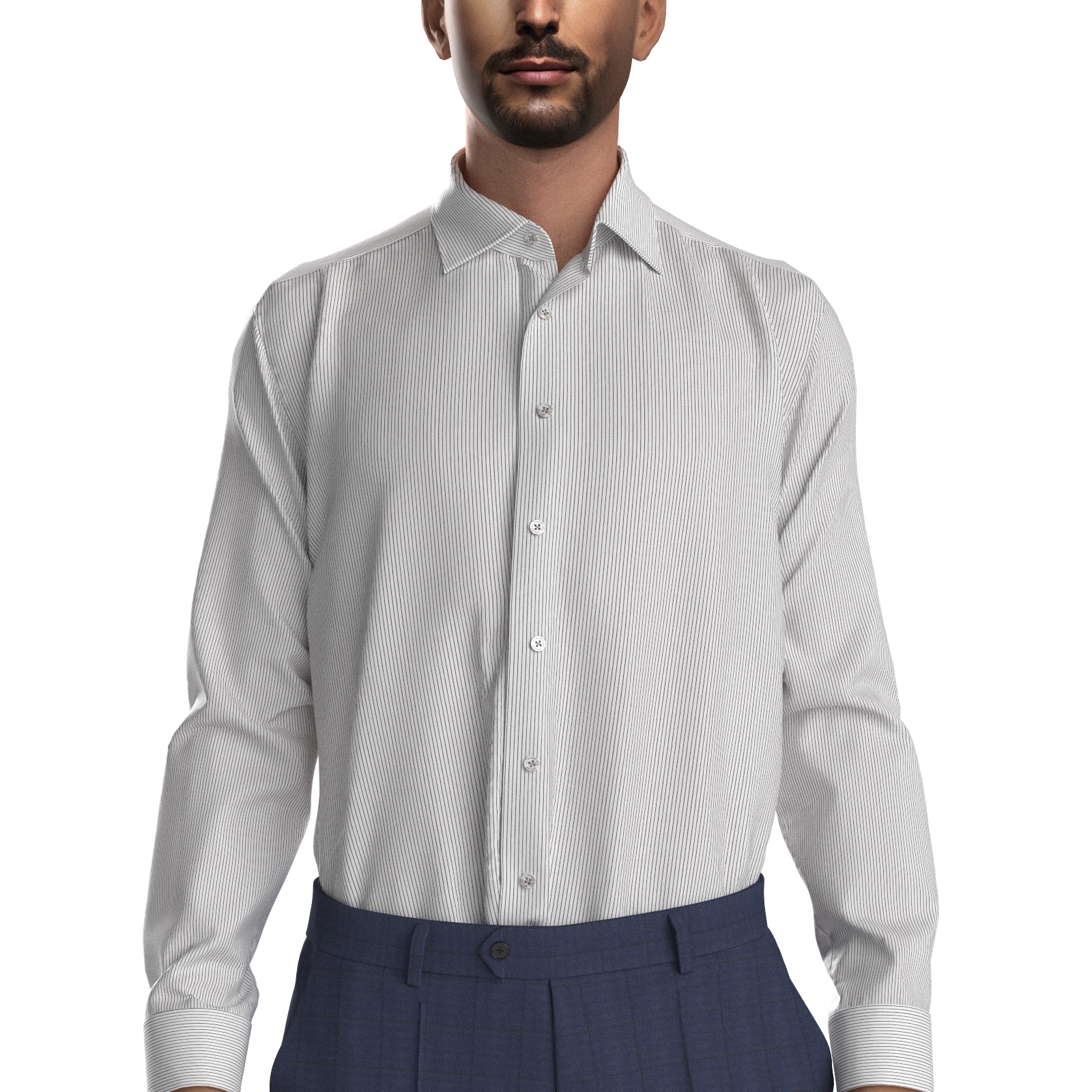 GIZA88の超長綿を使用した100双糸ガス焼きの上質なブラックのピッチ幅の狭いストライプ生地です。