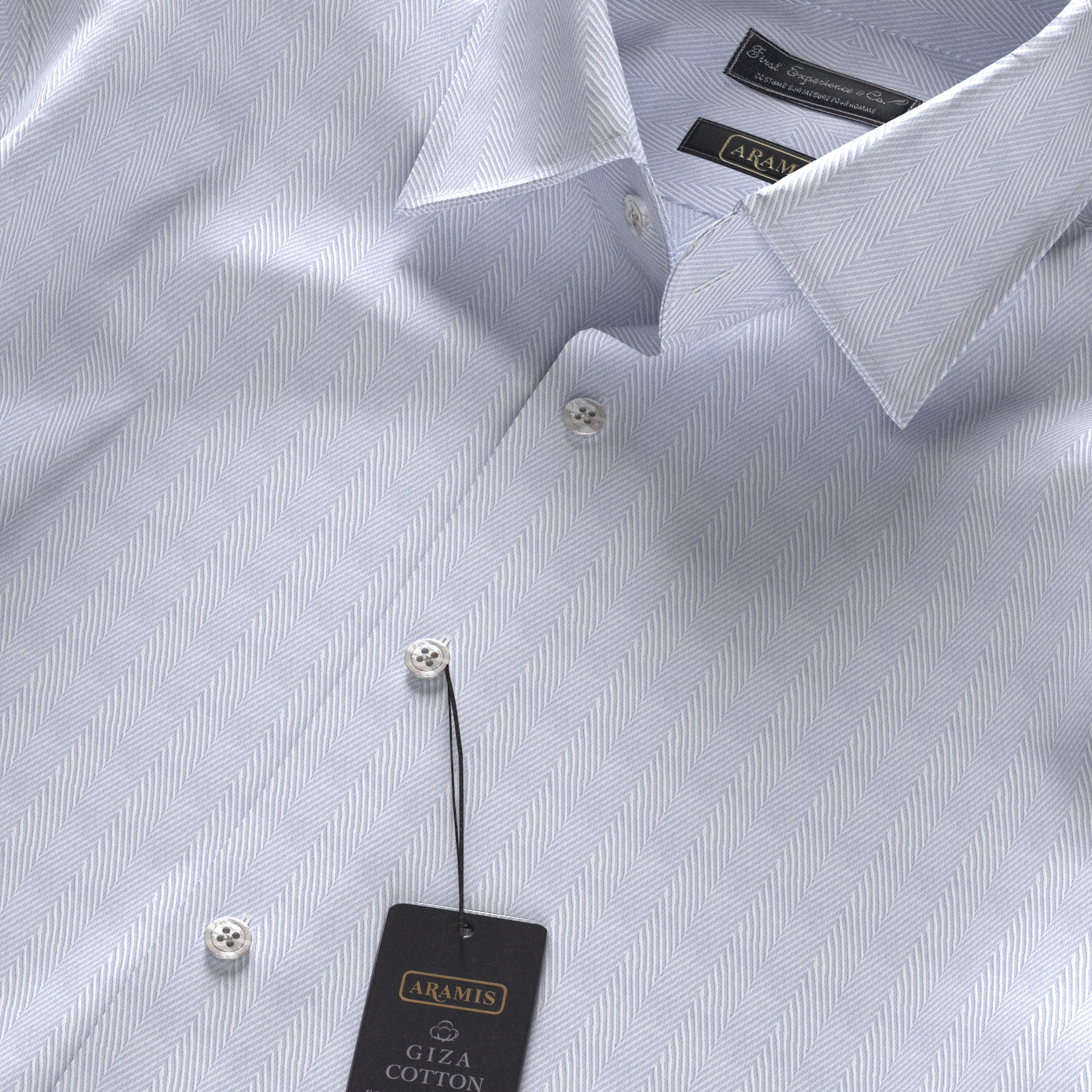世界的ブランドAramisの120双糸サックス・ヘリンボーン織生地です。
