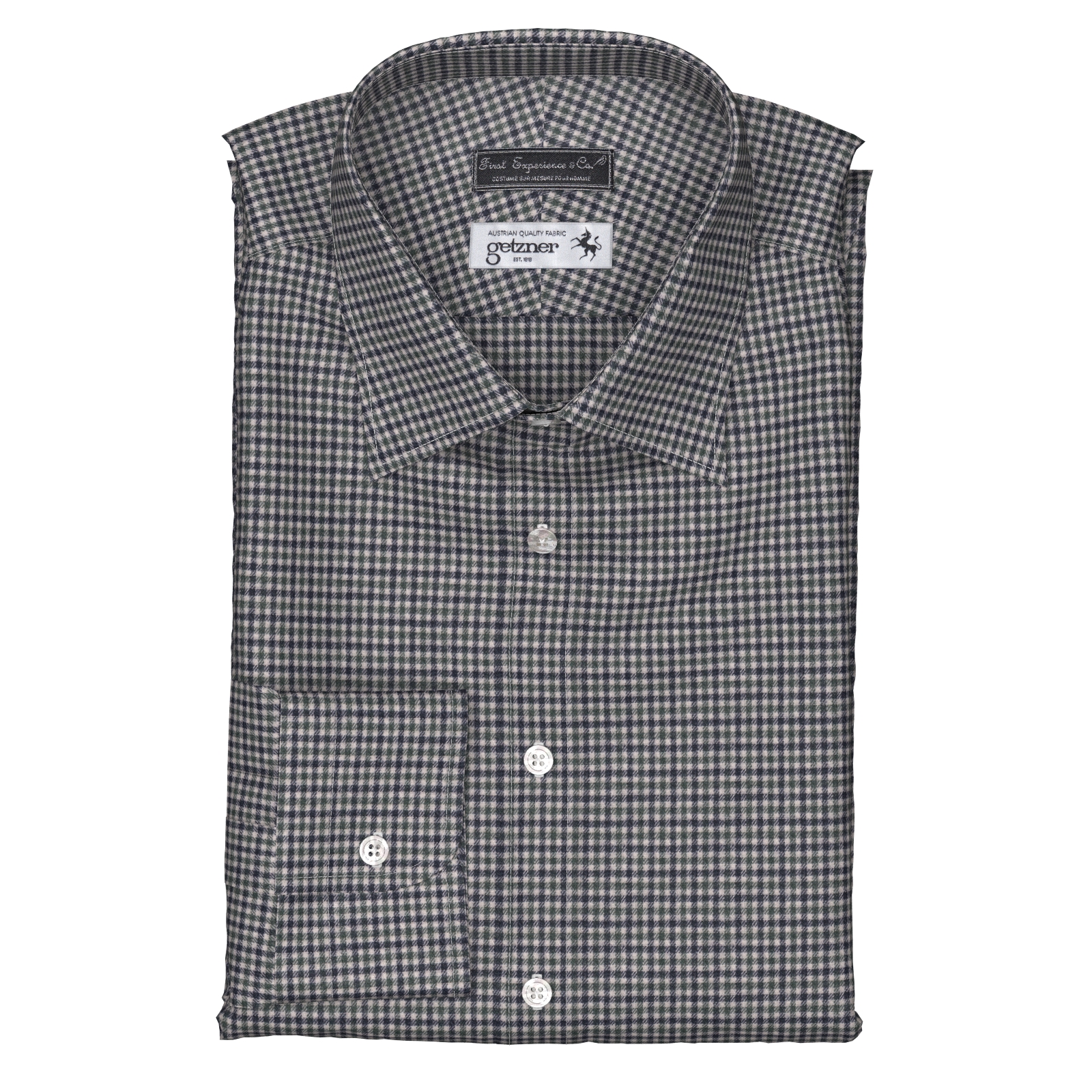 オーストリアの有名生地ブランドGetzner(ゲッツナー)のウール混のウオーム感のあるグリーンとブラックの格子柄生地です。