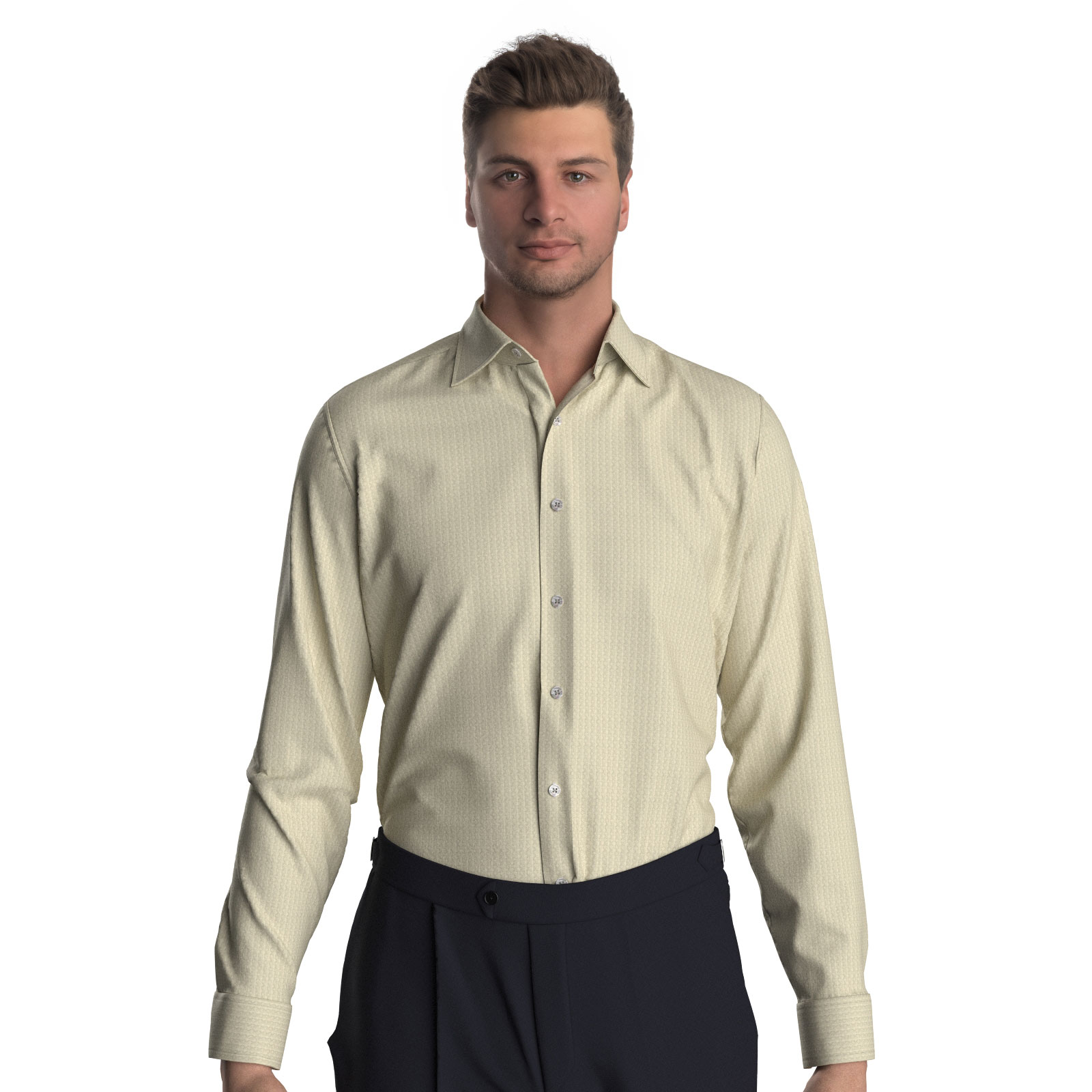 コットンのやわらかさとポリエステルのドライタッチを併せ持った、ダイヤ柄ドビー織のベージュ・ワッフル生地です。