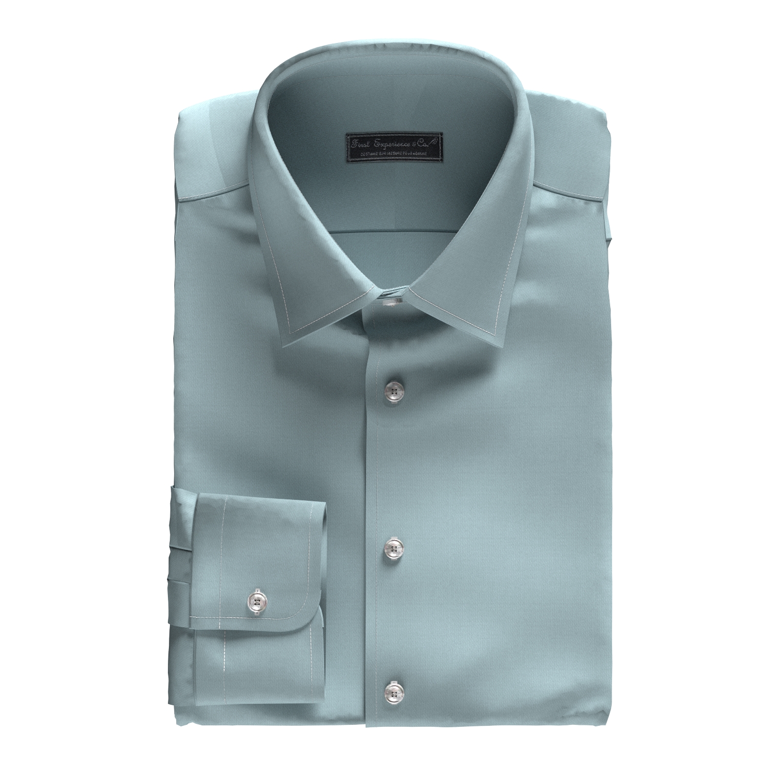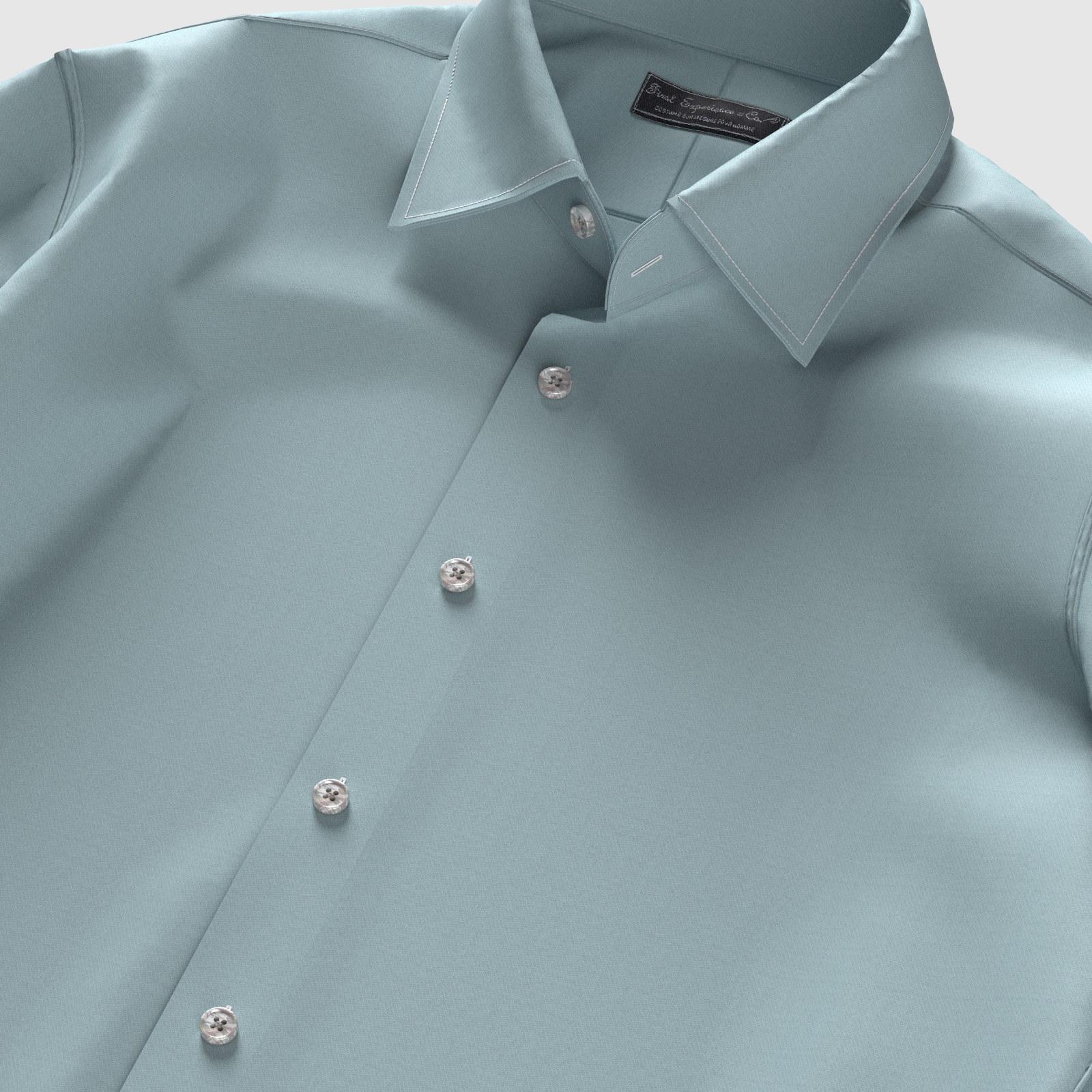上質な80単糸コットン100%で織られた形態安定性とストレッチ性の高いアクアブルーの細かなツイル生地です。