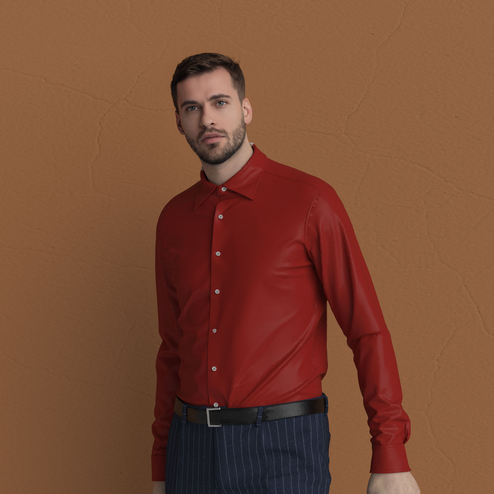 上質な80単糸コットン100%で織られた形態安定性とストレッチ性の高いバーントオレンジの細かなツイル生地です。