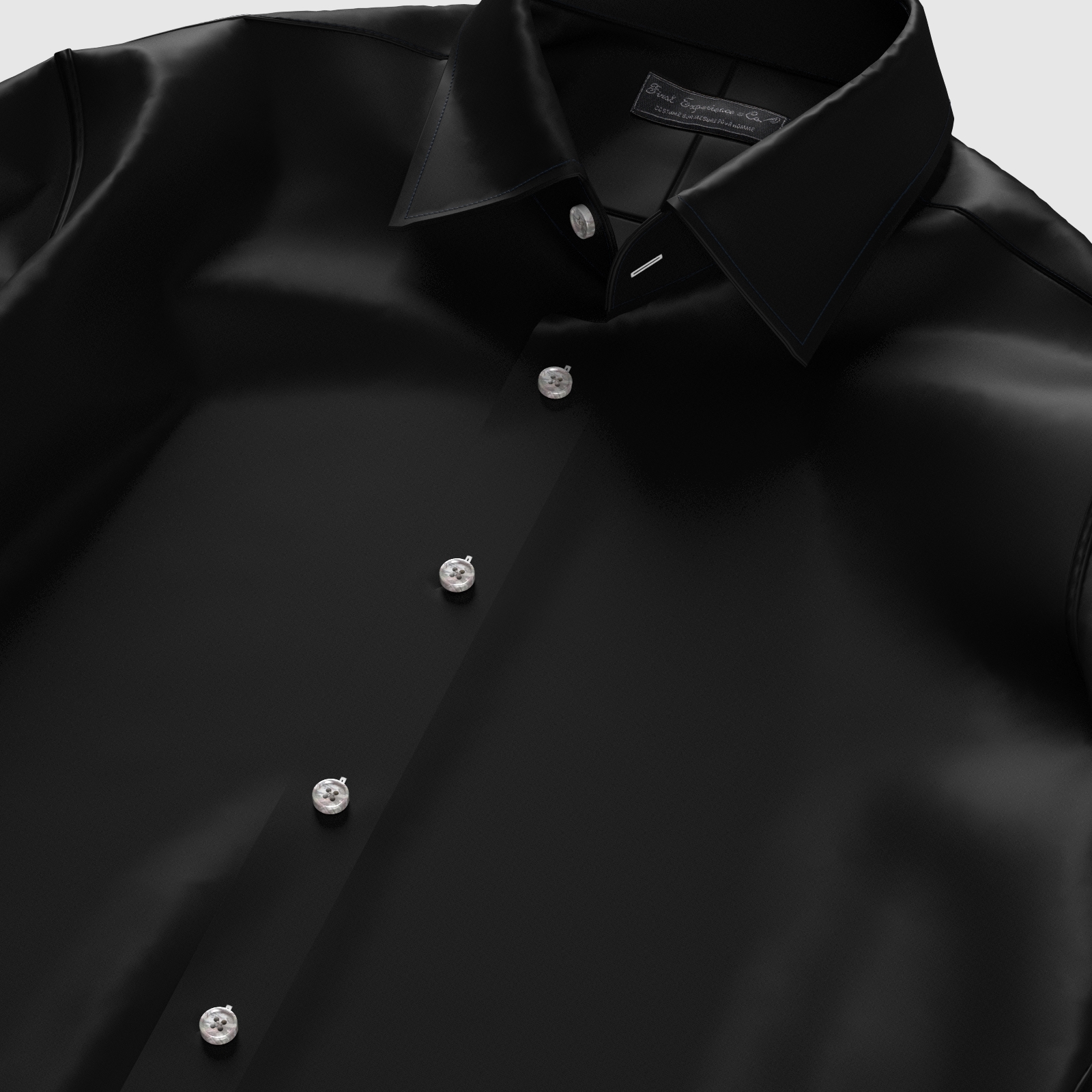 上質な80単糸コットン100%で織られた形態安定性とストレッチ性の高いブラックの細かなツイル生地です。
