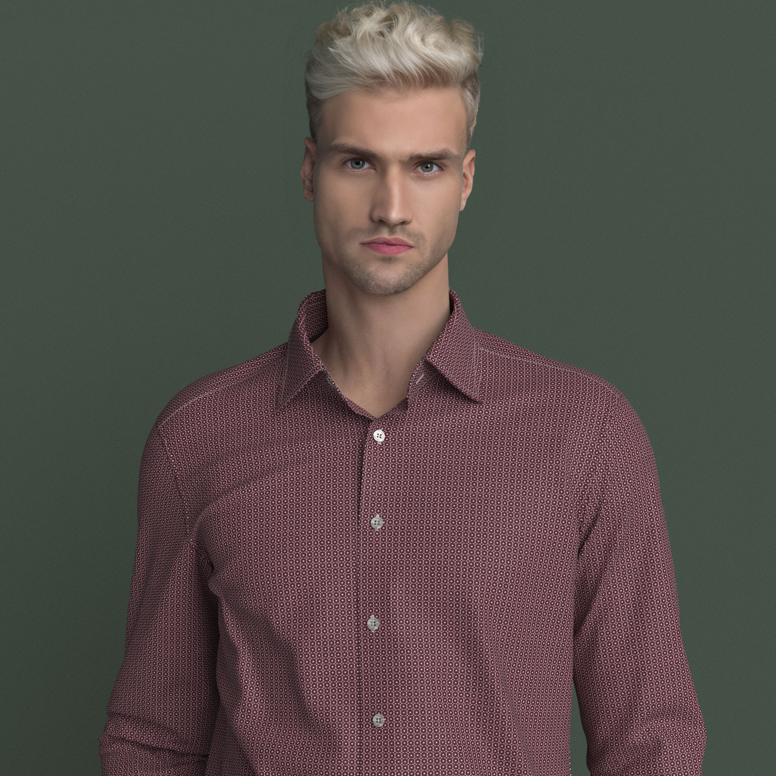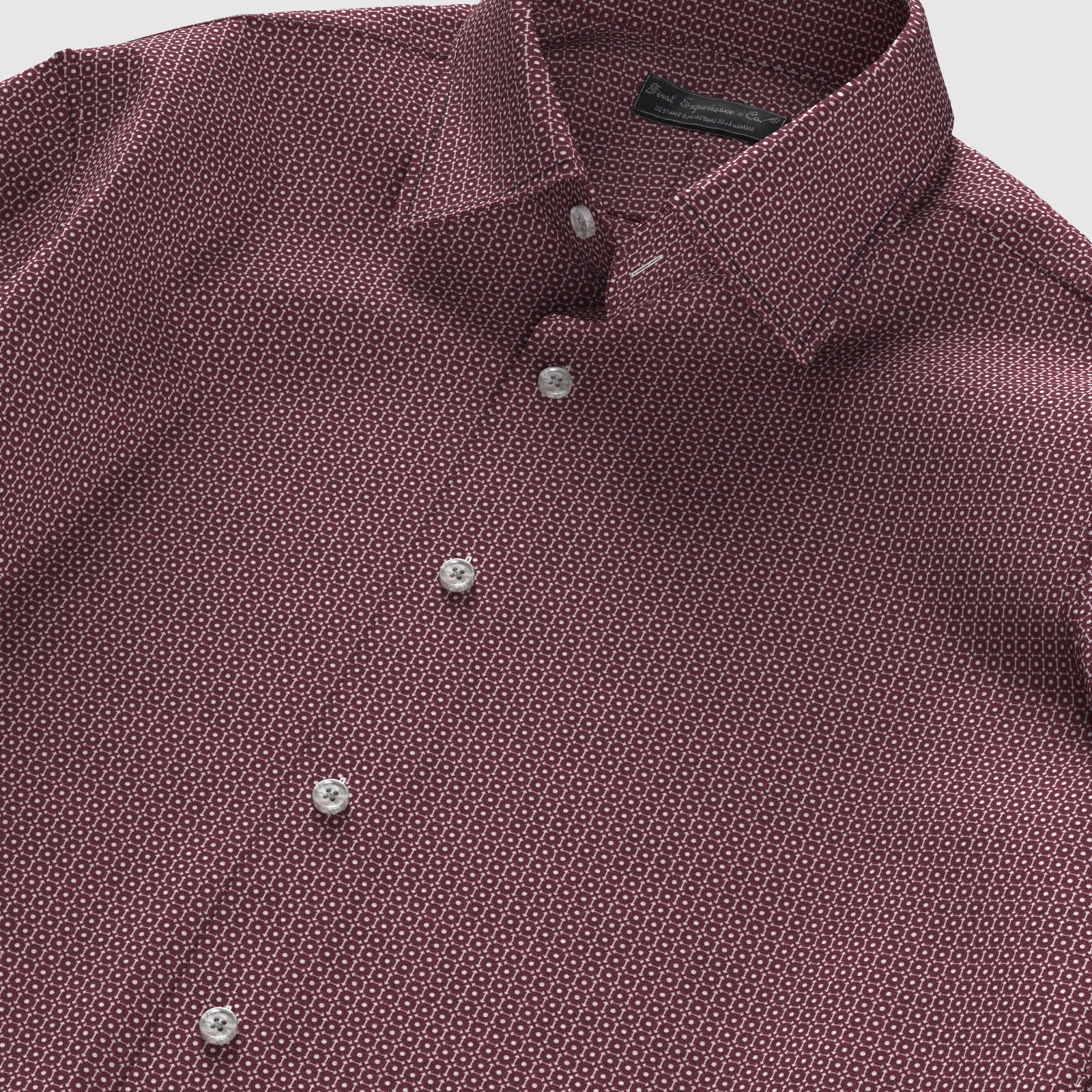しっかりとした打ち込み本数のブロード120gmsにバーガンディ・スクエア調のプリントをした上質生地です。