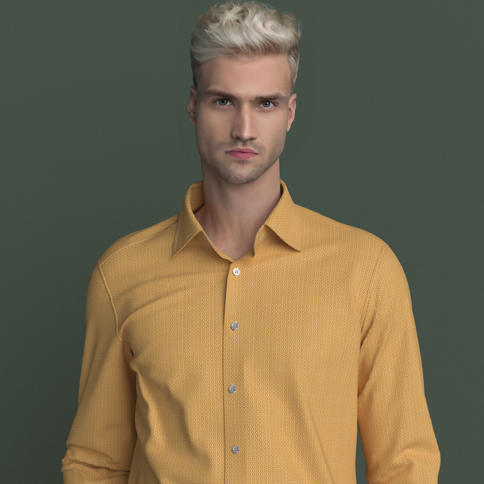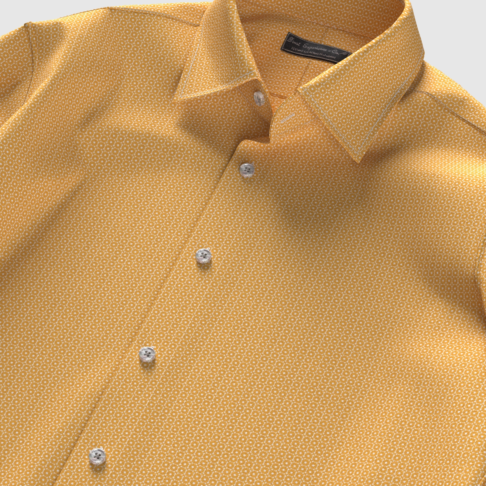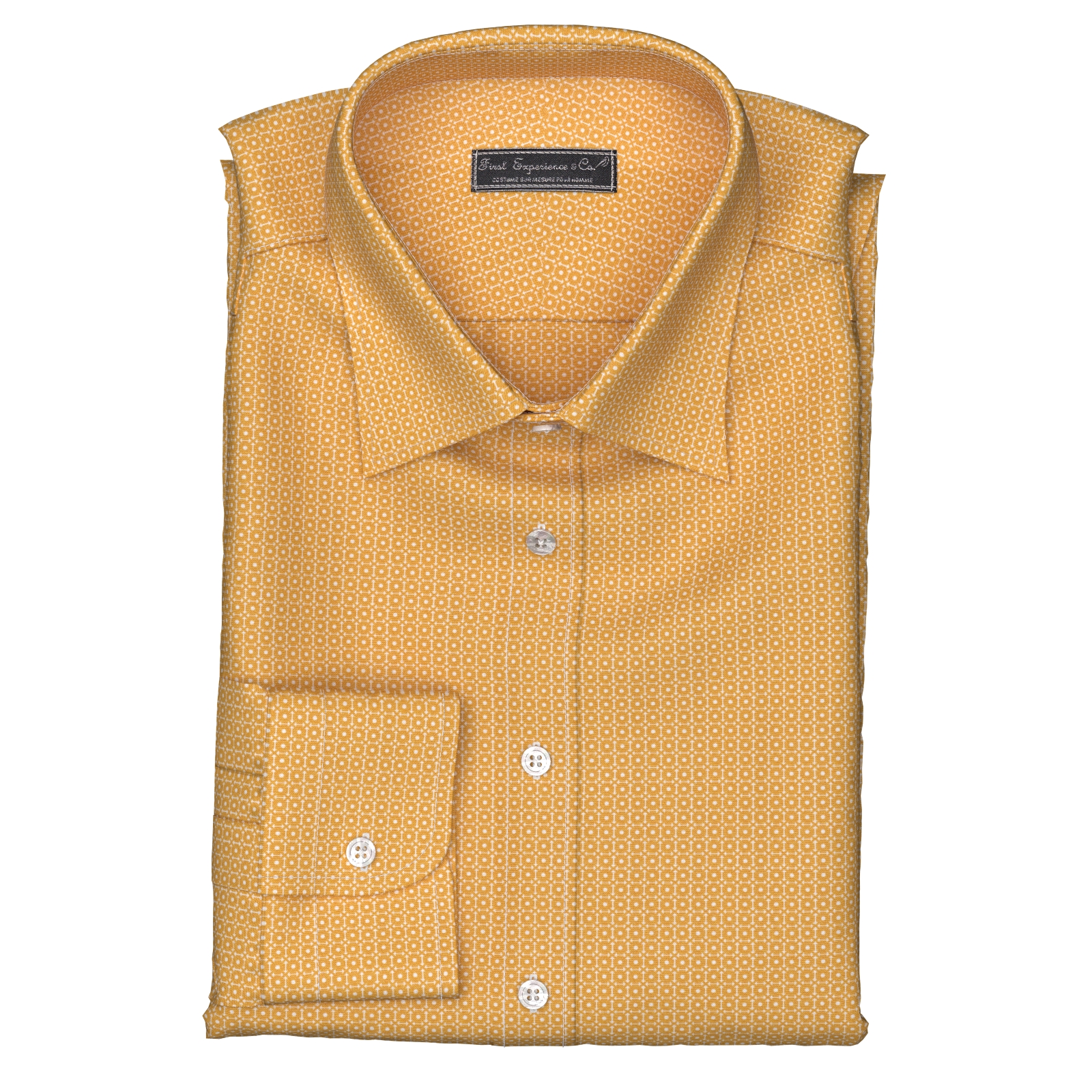 しっかりとした打ち込み本数のブロード120gmsにイエロー・スクエア調のプリントをした上質生地です。