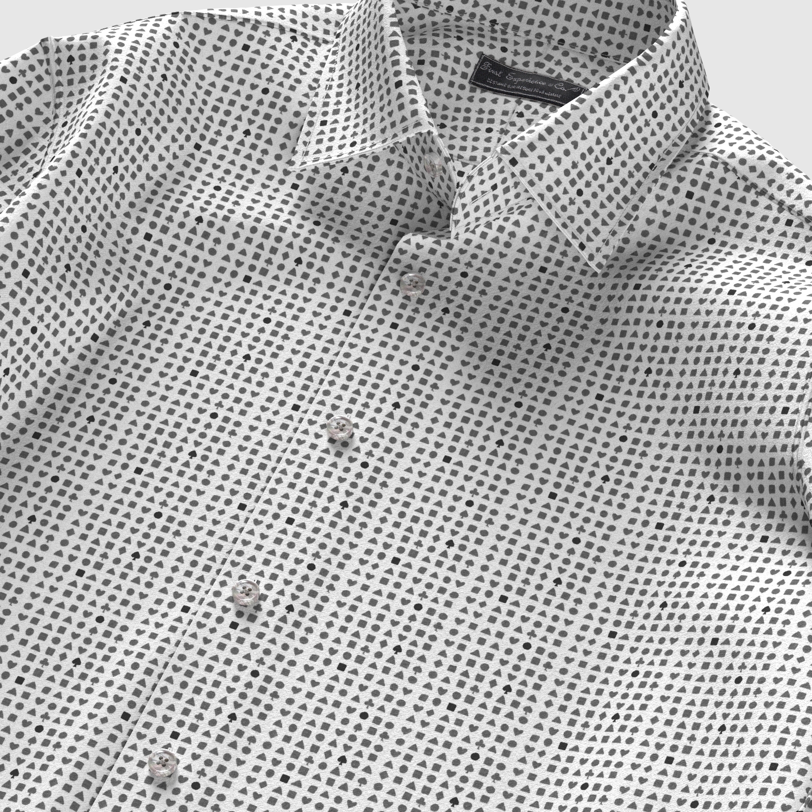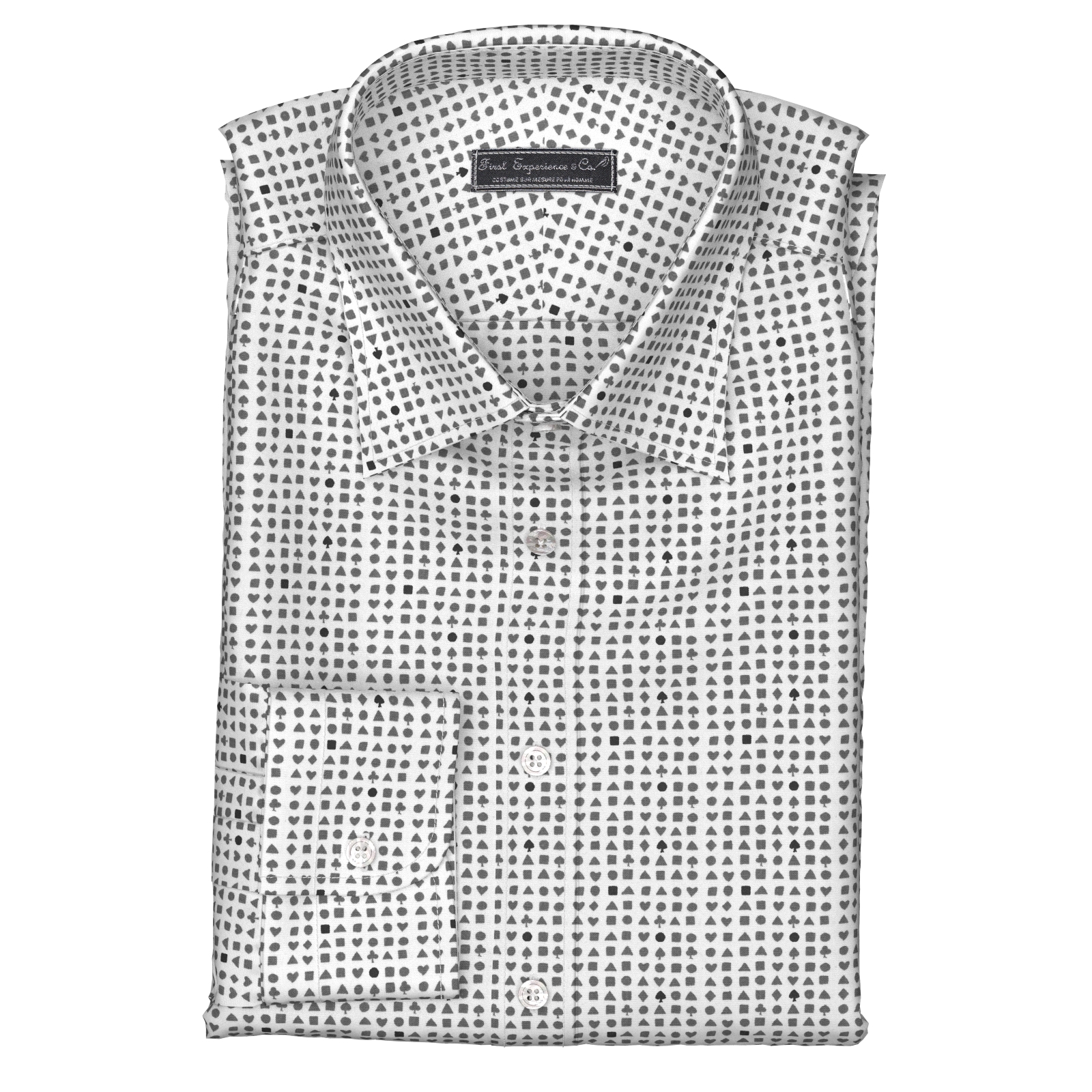 しっかりとした打ち込み本数のブロード120gmsにグレー×ブラックのトランプ柄プリントをした上質生地です。