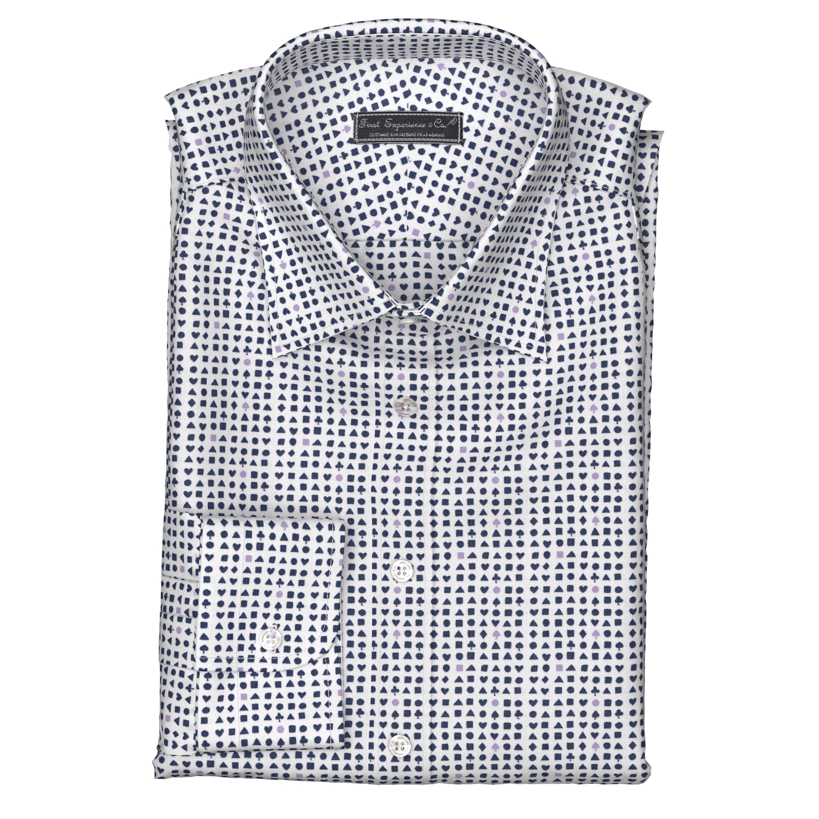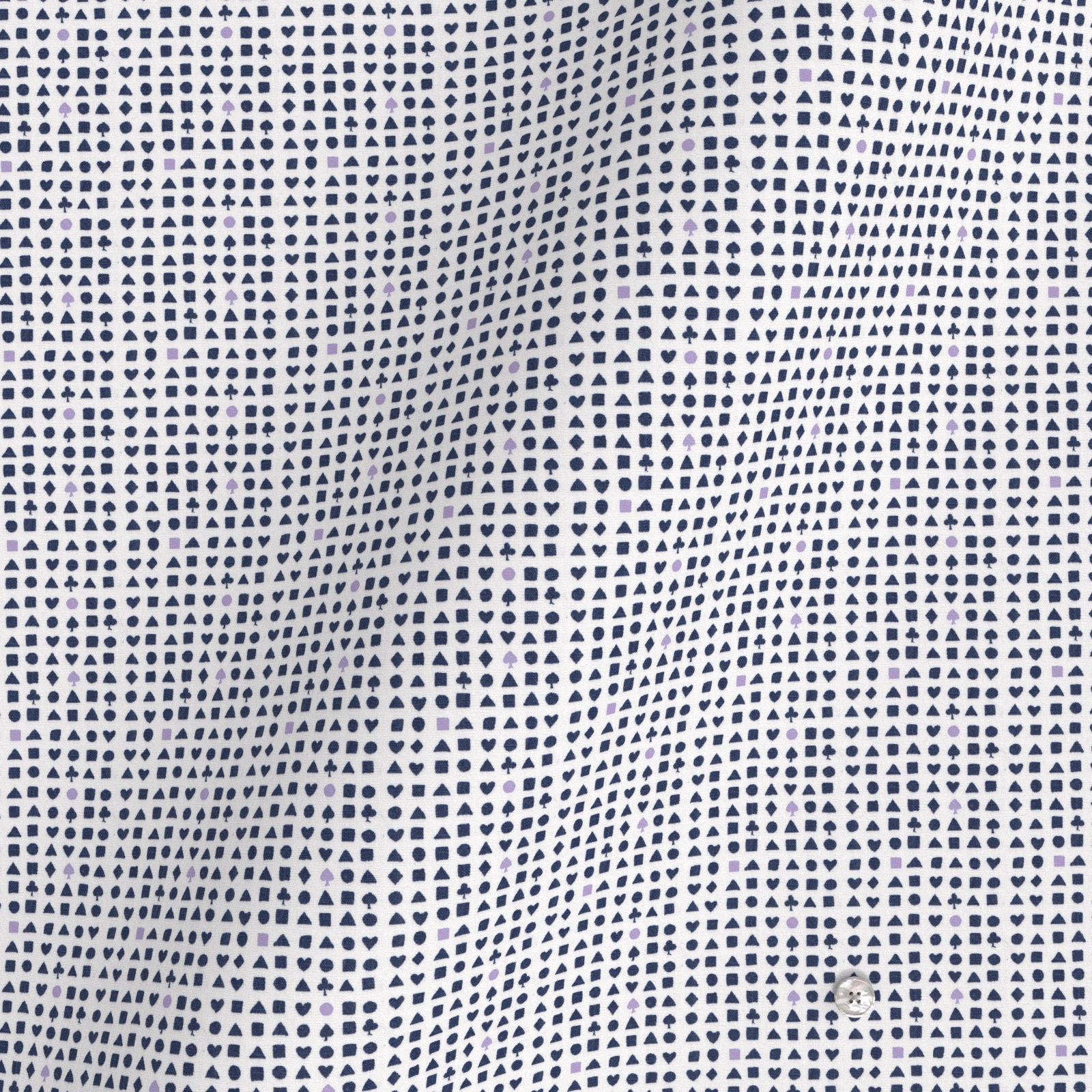 しっかりとした打ち込み本数のブロード120gmsにネイビー×ラベンダーのトランプ柄プリントをした上質生地です。